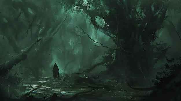 A few weeks pass after the conflict with Riverest, and the party is in need of their next adventure. The people of Biege have been snatched up, killed and eaten by a band of trolls that have set up shop in the dark and terrible Krasta Forest, a cursed place that only the heartiest dare tread. Accepting the meager gold the town could muster, with the promise of whatever loot they would find, the party descends into the forest. Within a few miles of marching through dense difficult terrain, the forest has a sudden opening as a charred scar breaks the claustrophobic woods. A large straight-line scar traces from the south-west, a definite mark that the Phoenix had flown overhead and burned a straight path, cauterizing a forest of choking density. Here, an ebon-skinned minotaur is in combat with a burnt wood spirit, and swiftly the group approaches to assist. After brief introductions, and a revelation that he is looking for the Szarkai, the group is attacked by a fire elemental spawned from the power of the Phoenix. After their victory, the band of seven make their way once more into the impassable woodland, only making forward progress with the leadership of the ranger. A brief battle with a squad of forest trolls confirms the presence of the green giants. Further investigation brings them to the corrupt glade that serves as the home of this band of trolls, a dark moss laden tower of a tree with tunnels burrowed underneath its grasping roots. Taking the night to rest and camp, the night does not shake the ever-present dread of being watched the forest imposes. Thaleia is then approached in camp by a draconic speaking creature lurking out of the campfire light. She takes up her bow and marches into the woods, and fails to return that night. Myrddin, speaking with an oddly intelligent squirrel, becomes aware of the true ruling power of this corrupt place, The Jade Queen. Come the morning, the party resolves to put the trolls aside to face the enigmatic Queen of this country. It is after their audience with the Jade Queen that the party returns to the rotten tree, and massacre the trolls that laired within, completing their task of eliminating the foul threat.