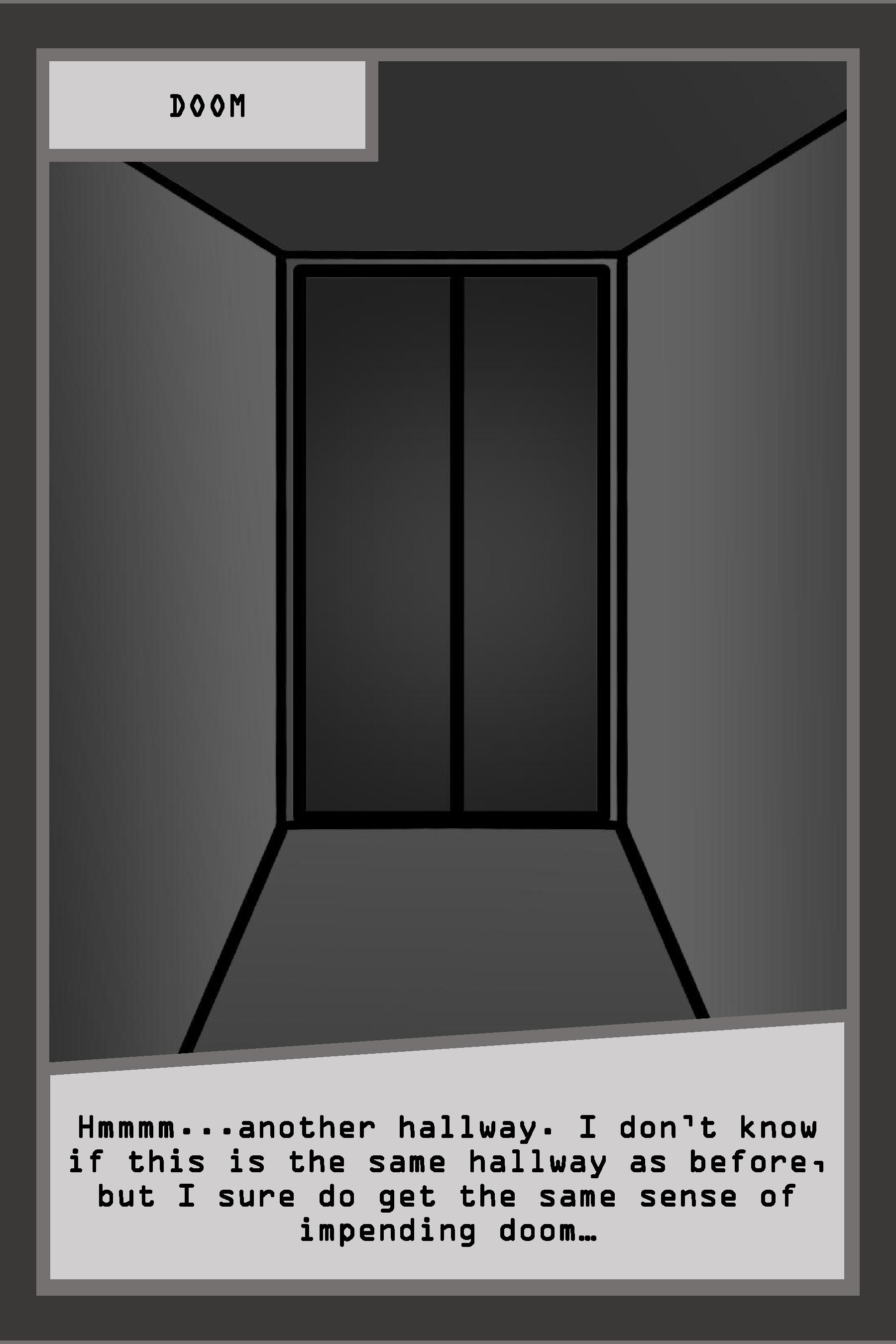 "Hmmmm...another hallway. I don’t know if this is the same hallway as before, but I sure do get the same sense of impending doom…"