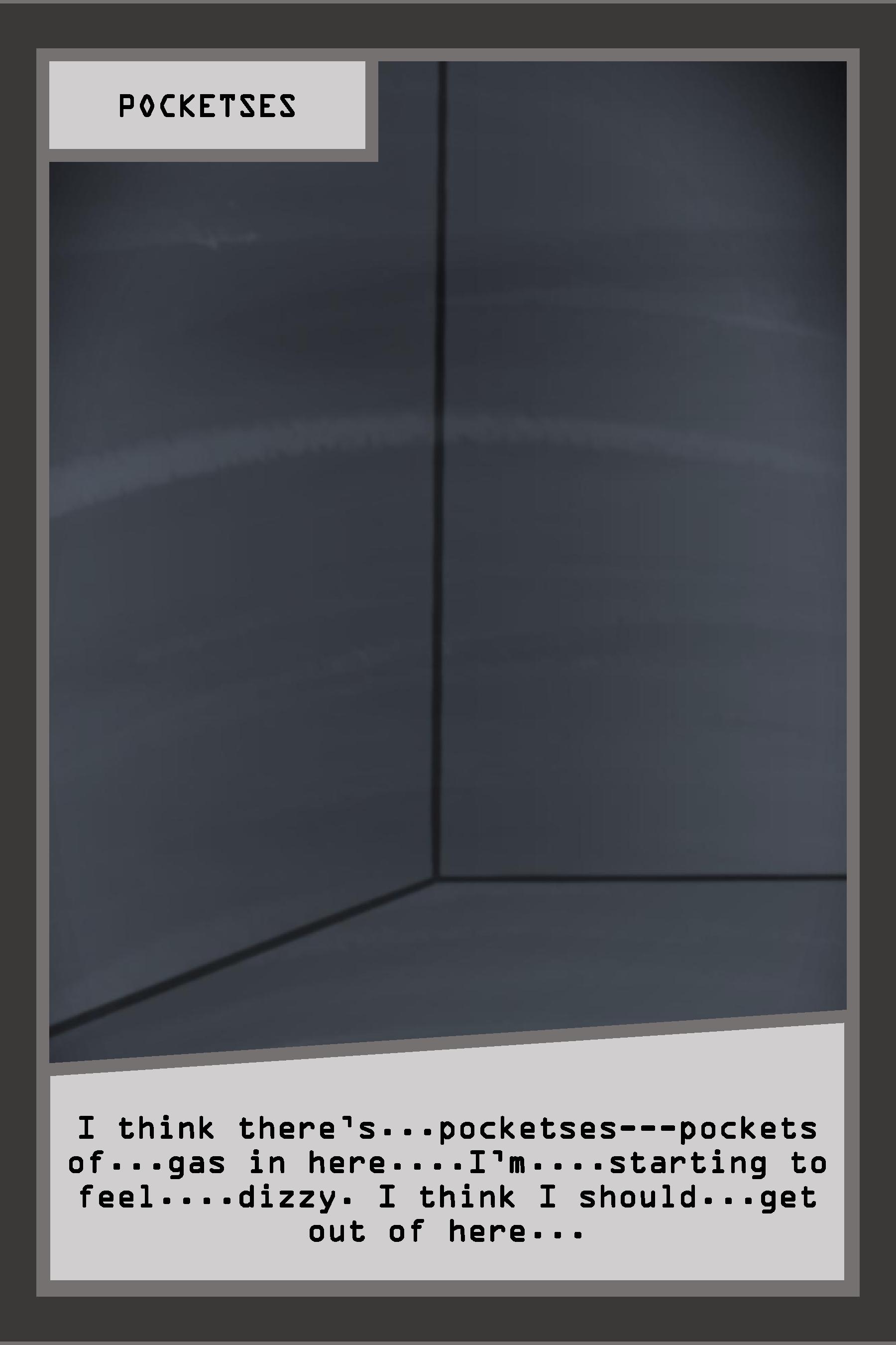 "I think there’s...pocketses---pockets of...gas in here....I’m....starting to feel....dizzy. I think I should...get out of here..."