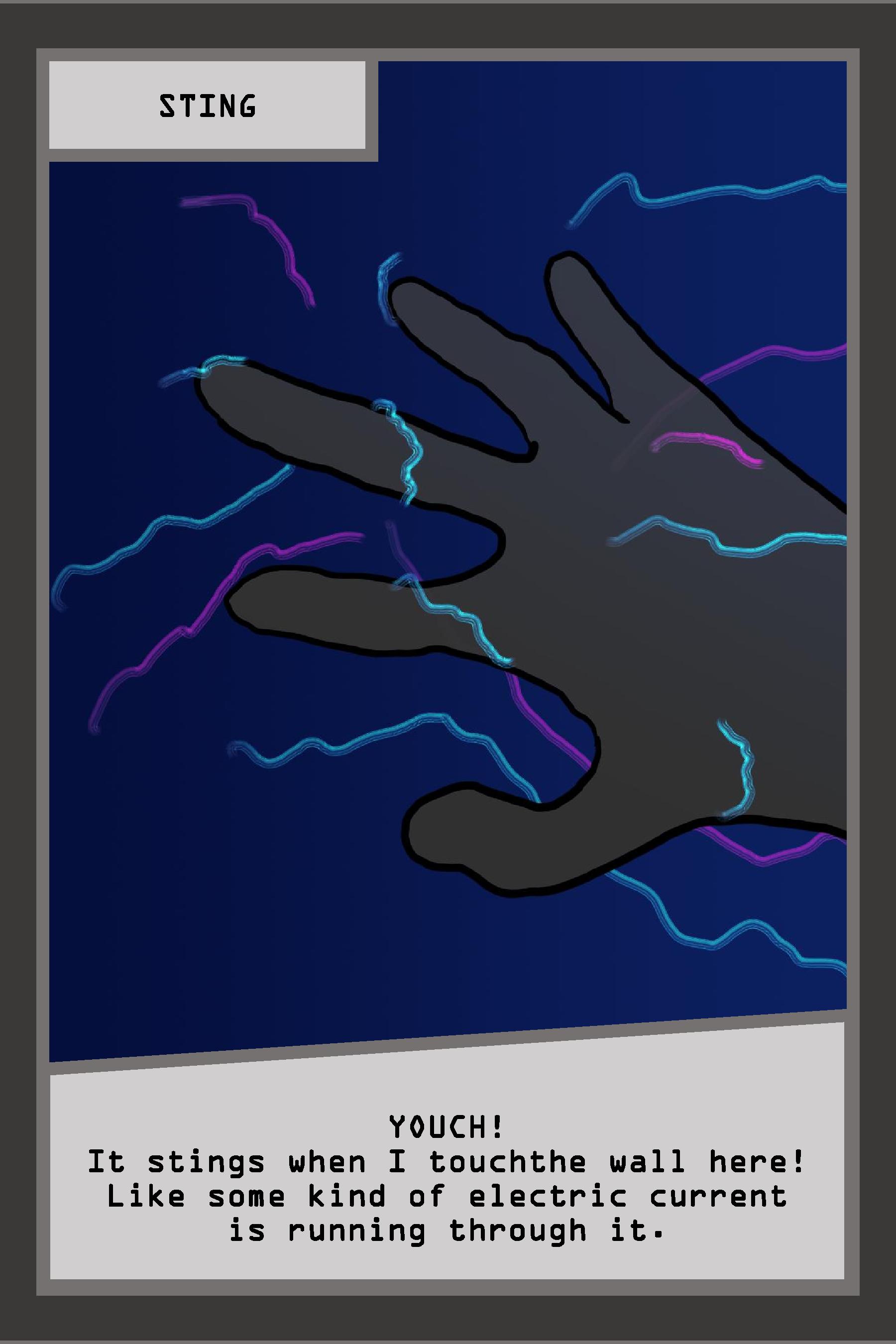 "YOUCH! It stings when I touch the wall here! Like some kind of electric current is running through it."
