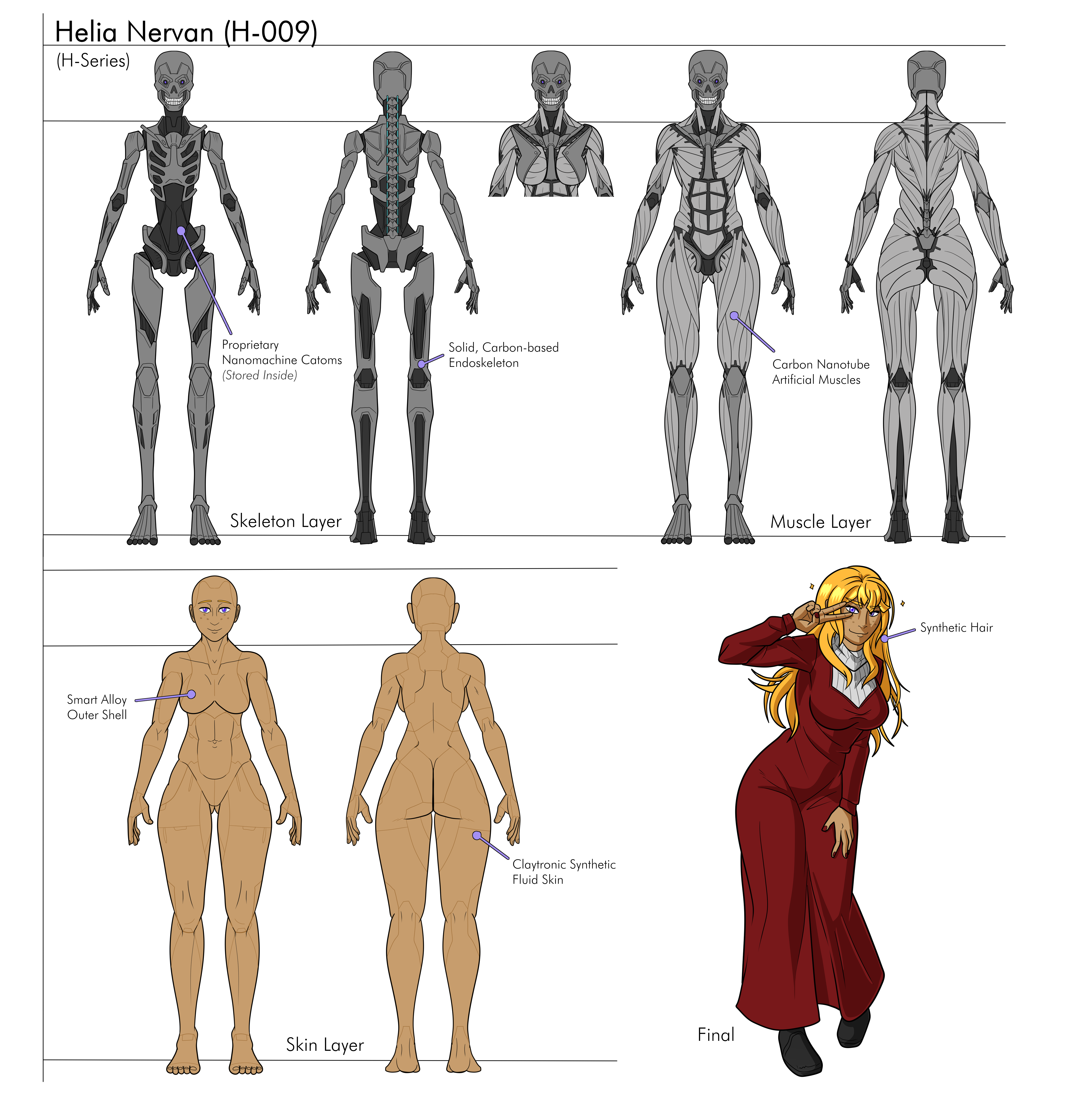 The H-series are robots that resemble humans in both appearance and structure, the most advanced series to feature human behavior mimicry. Due to the proprietary technologies and sophisticated systems installed, H-series are the most expensive android units available on the Belduan market, with active model numbers only counting up to the double digits.