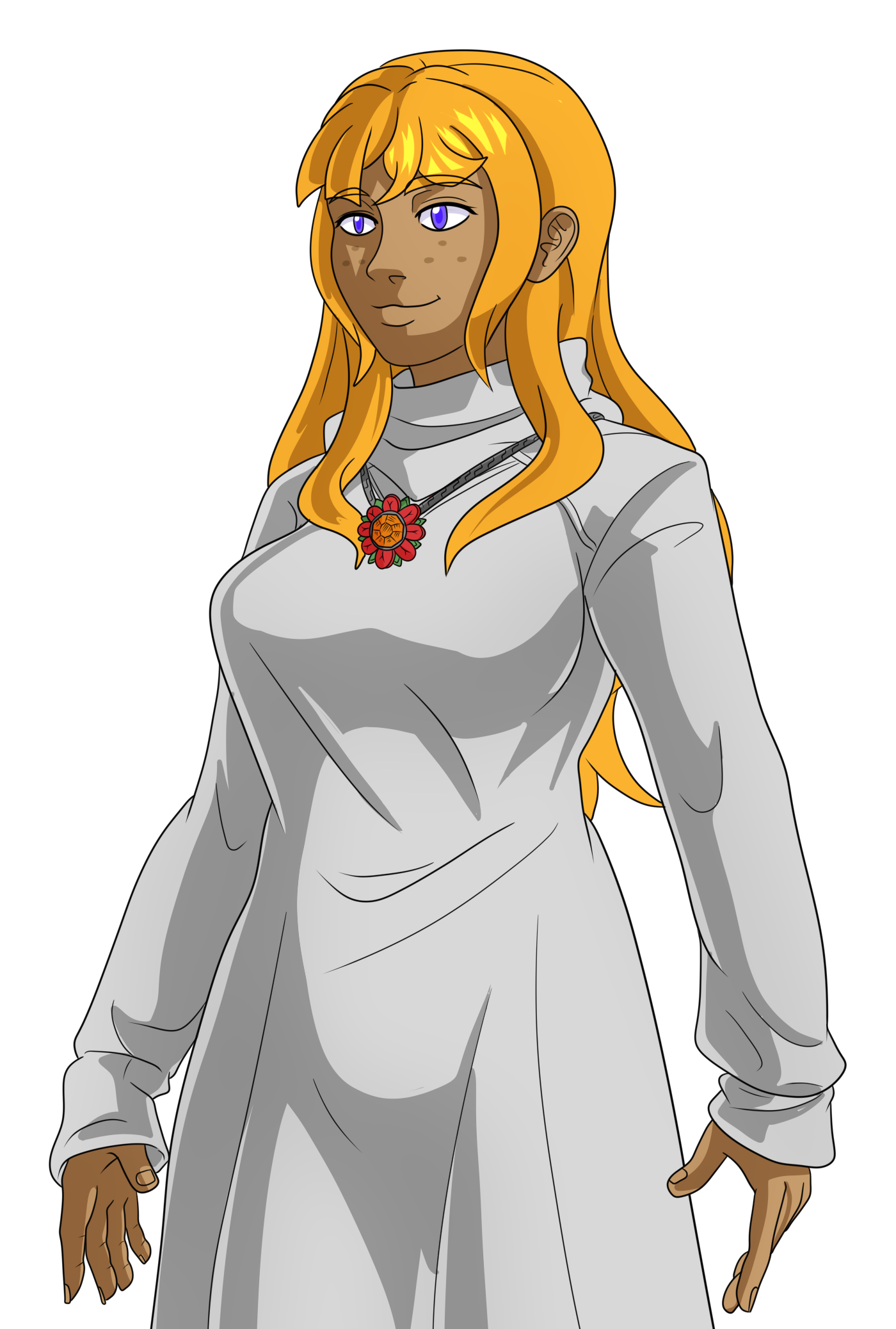 Externally, Helia looks like a human, though there are some features that give her away to a trained eye. She is usually seen wearing a long white dress, though since she has escaped her previous circumstances Helia has taken to wearing a lot of other dresses.