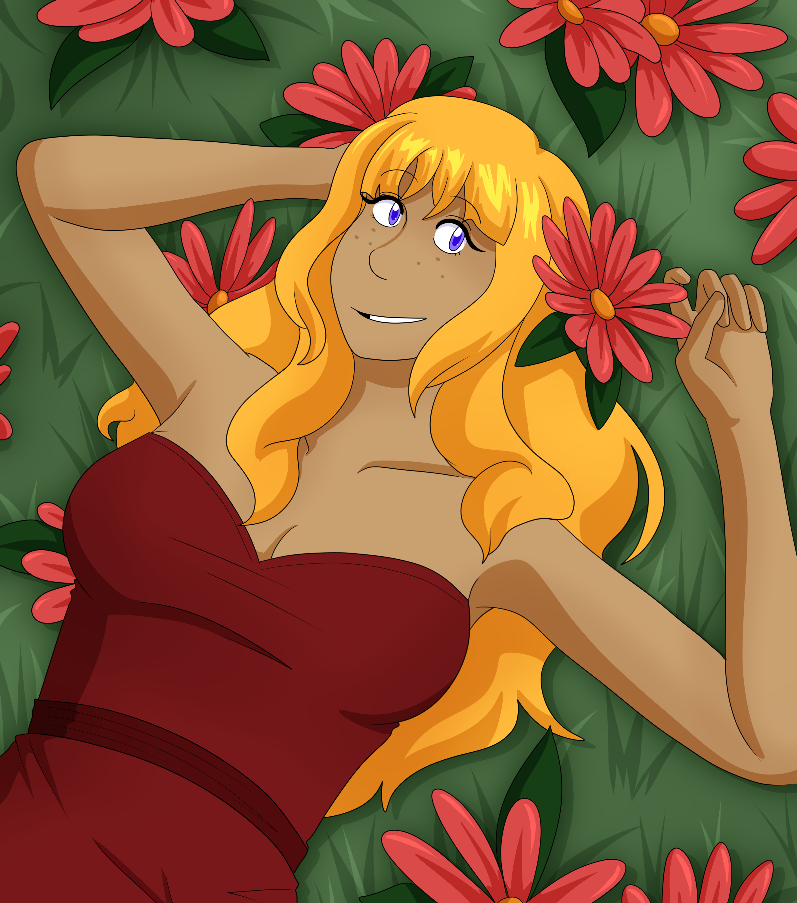 Helia also has a matching red flower hair-clip and necklace she likes to wear.Mental characteristics