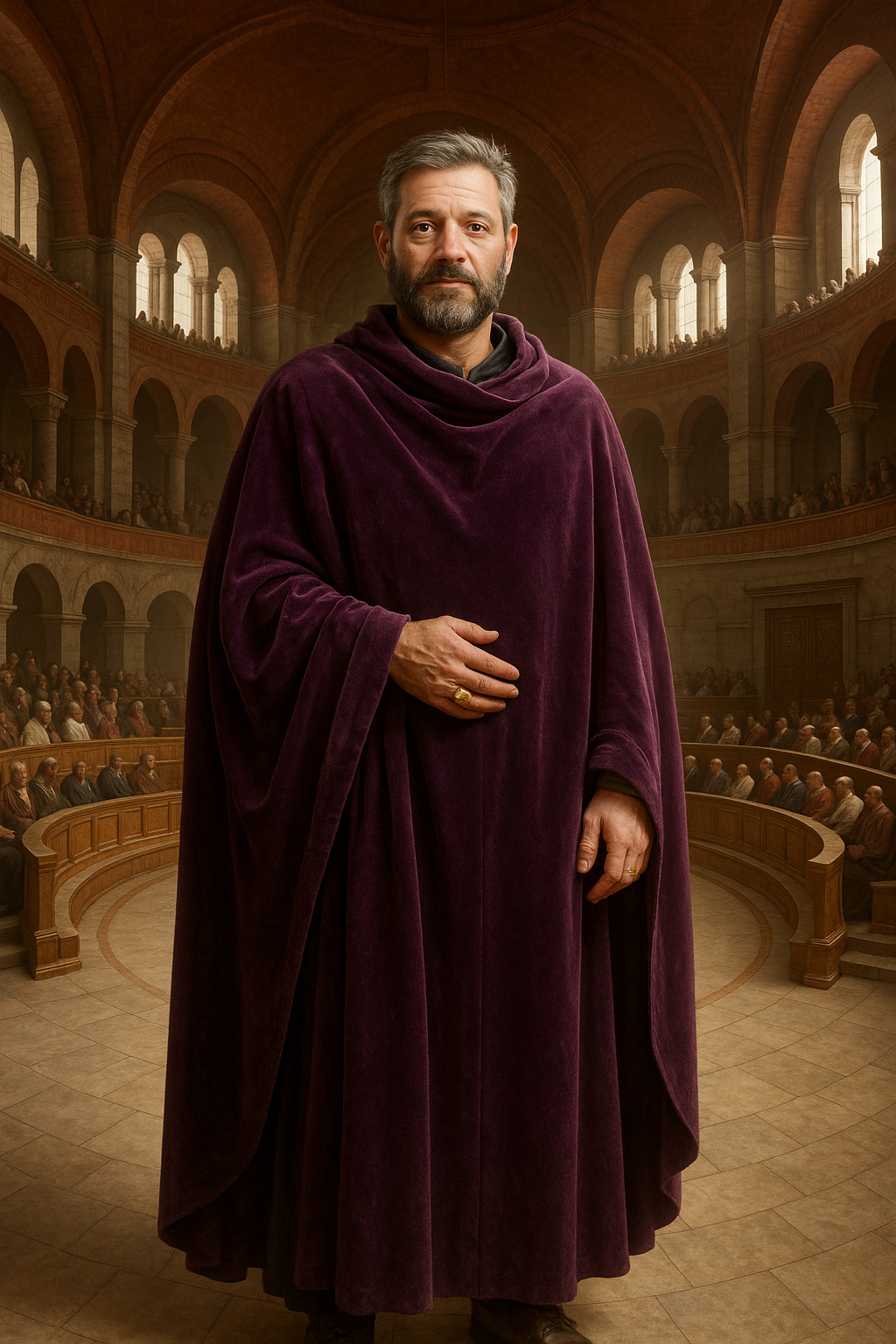 Cyzo Udirel was born in Coranan into a family once belonging to the smaller, free merchant houses — not poor, but without influence. He made his way by skill rather than inheritance: first as a jurist in the republic’s commercial court, later as an adviser to several prominent senators before being elected to the chamber himself.His political career has been defined by a clear credo: that Tharda’s strength lies not in its borders, but in its order. A convinced Consolidationist, he sees the republic’s greatest threat not in external enemies but in internal division. His speeches emphasize the importance of law, institutions, and measured governance, even when populists demand expansion or vengeance.