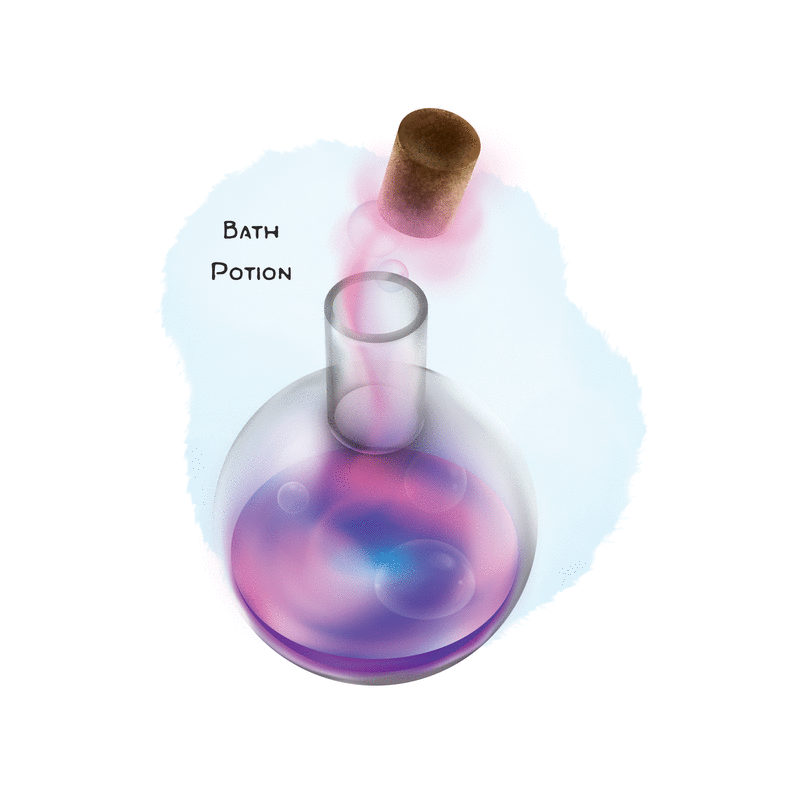 This bubbly potion is frothy and smells like lavender. When you drink this potion, any dirt and grime on your body is magically rinsed away. Further, your breath, hair, and nails are suddenly cleaned, looking either polished and pristine or smelling of daisies and honey for the next 24 hours. Bubbles occasionally escape from your mouth while the potion is in effect.