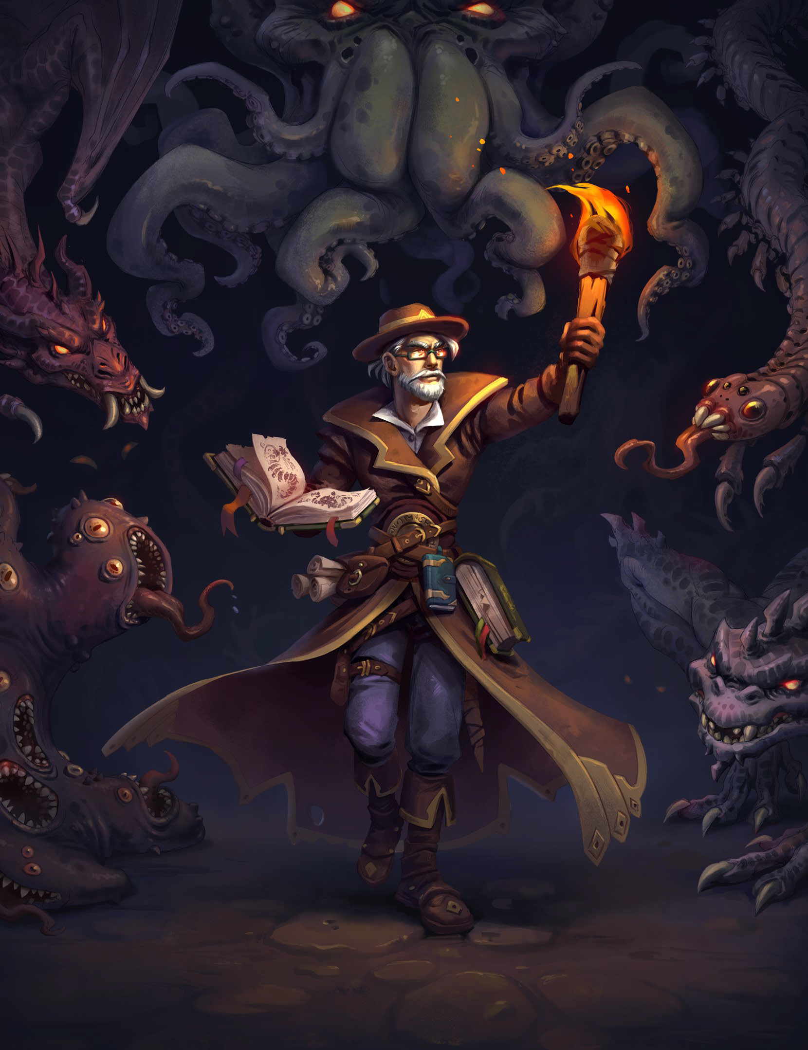 There are forces more ancient than time, foes more sinister than the foulest men, and beings more titanic than gods. The world stands at a precipice of woe and terror, being threatened nightly by dark agents and hordes of monsters. At risk to their own lives and sanities, investigators penetrate the evil that creeps in the shadows and banish it from the world. Their battles are never-ending, for victory only delays doomsday another night.