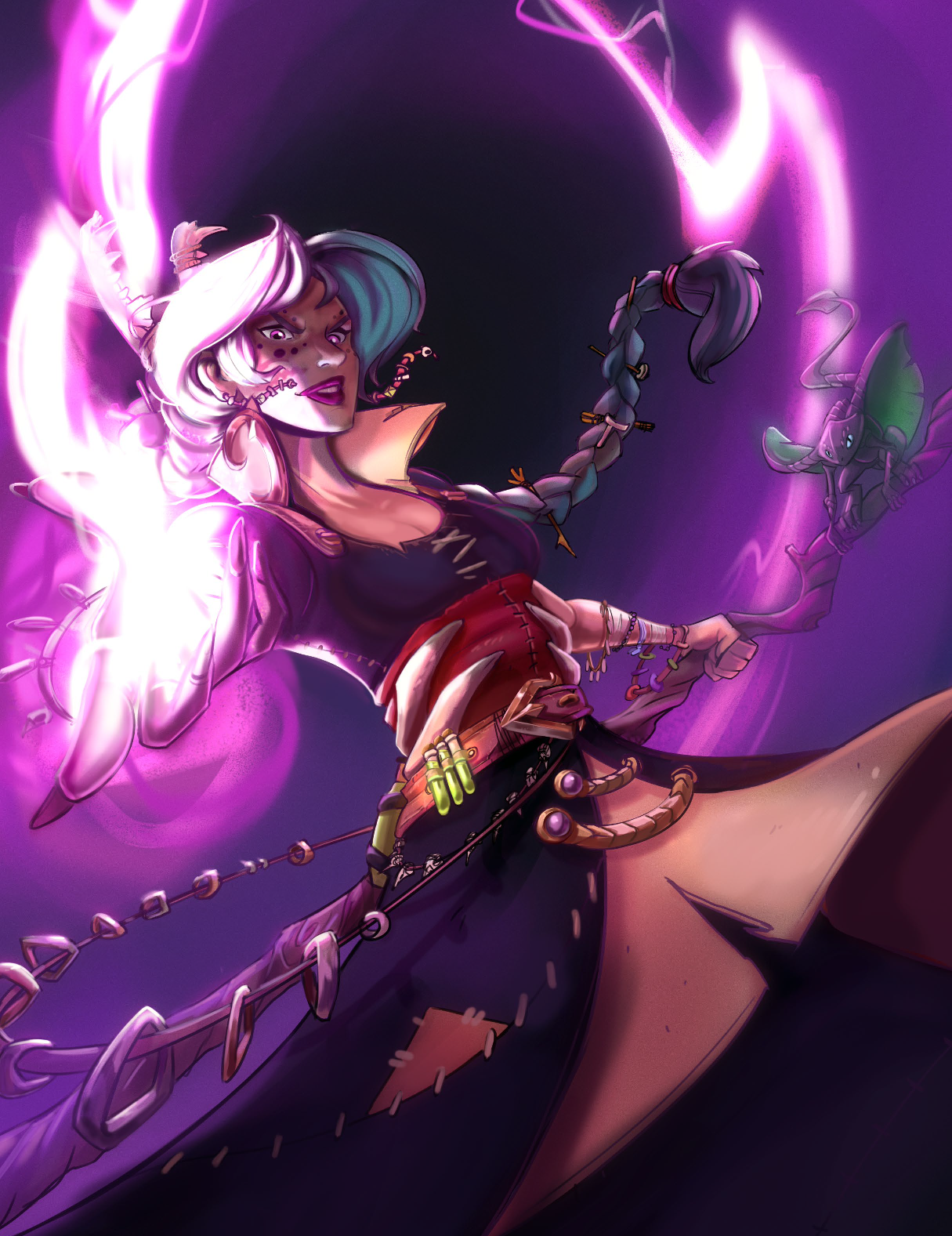Witches are stricken by magic so dark it imprints a lasting shadow upon their essence. Through force of personality alone, they can spin this darkness outward, hexing creatures, casting manipulative spells, and even commanding a familiar with their thoughts.