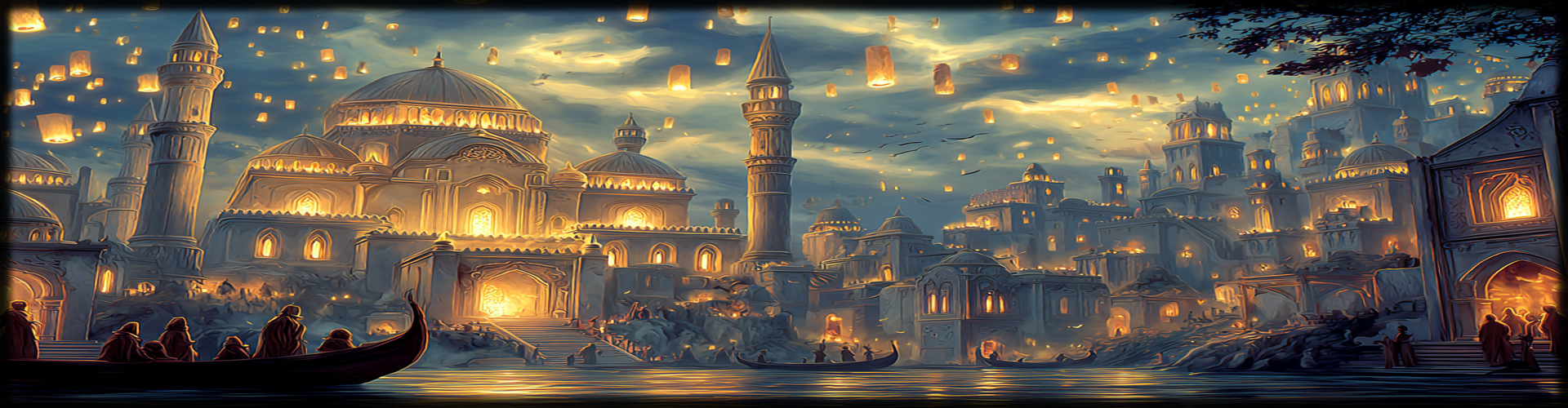 At dusk, thousands gather in Triad Plaza, the central plaza of Warda and in other grand plazas across the city, where elders burn sacred resins that rise to mingle with the clouds above. Children craft miniature sky-boats from parchment, believing their wishes will ascend when released.