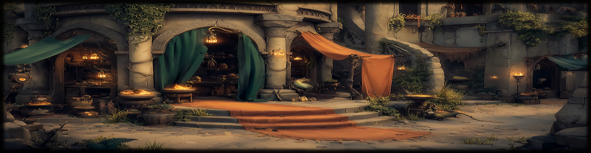 Type: Exotic Creature Seller   Details: A menagerie of magical beasts — tiny glass-winged serpents, pocket-sized sand lions, and bottled storm elementals. The shop is cloaked in illusory heat shimmer, making it hard to tell what’s real.
