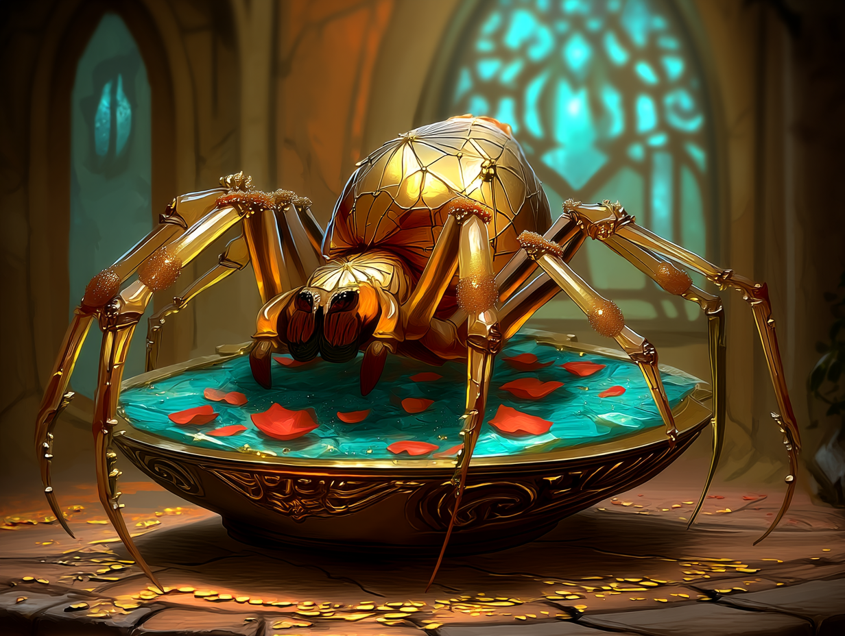 Middle of the three Faelight Haven Spiders, Zari embodies elegance and harmony. Where Tissera is structure and Nyxa is chaos, she is the golden thread that holds warmth between them. Her silken strands shimmer with the glow of soft sunlight, never harsh, but radiant and comforting — like dawn’s embrace or the warmth of a hearth after a long journey. Each fiber she spins carries a subtle enchantment of comfort, weaving calm into even the most restless of hearts.