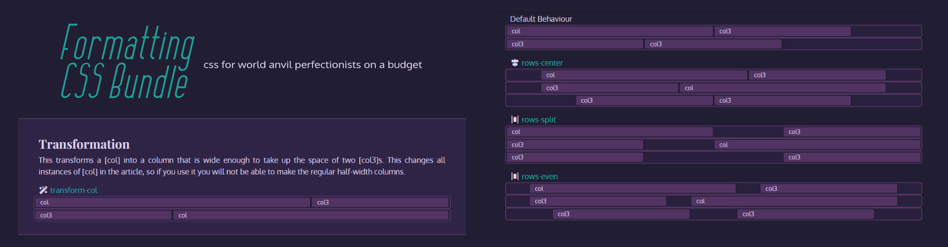 This is a bundle of free ready-made CSS to make formatting nice articles easier. It can be used by all guild members.