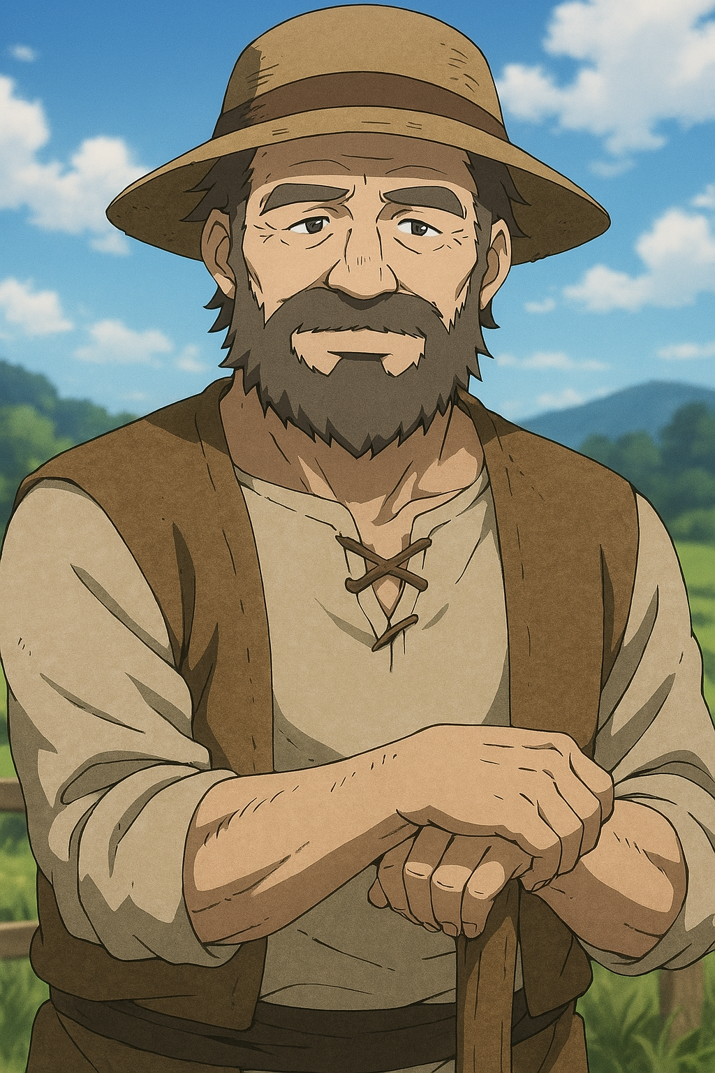 A weathered farmer with hands like braided rope and a gaze that sees straight through nonsense. Halbryn is the kind of man who speaks in actions more than words—fixing a broken gate before anyone asks, leaving a fresh apple on the windowsill when Elysiaera's had a rough day. He taught her the rhythm of the land: how to sow with patience, harvest with gratitude, and endure with grace. His guidance is firm but never harsh, always laced with quiet affection—even when she’s come home covered in burrs and caked in mud for the third time that week. Though he rarely laughs aloud, his eyes crinkle with warmth when she’s being ridiculous. He calls her “little sprout” with a fondness that never fades, and when she doubts herself, it’s his steady presence that reminds her where her roots are.