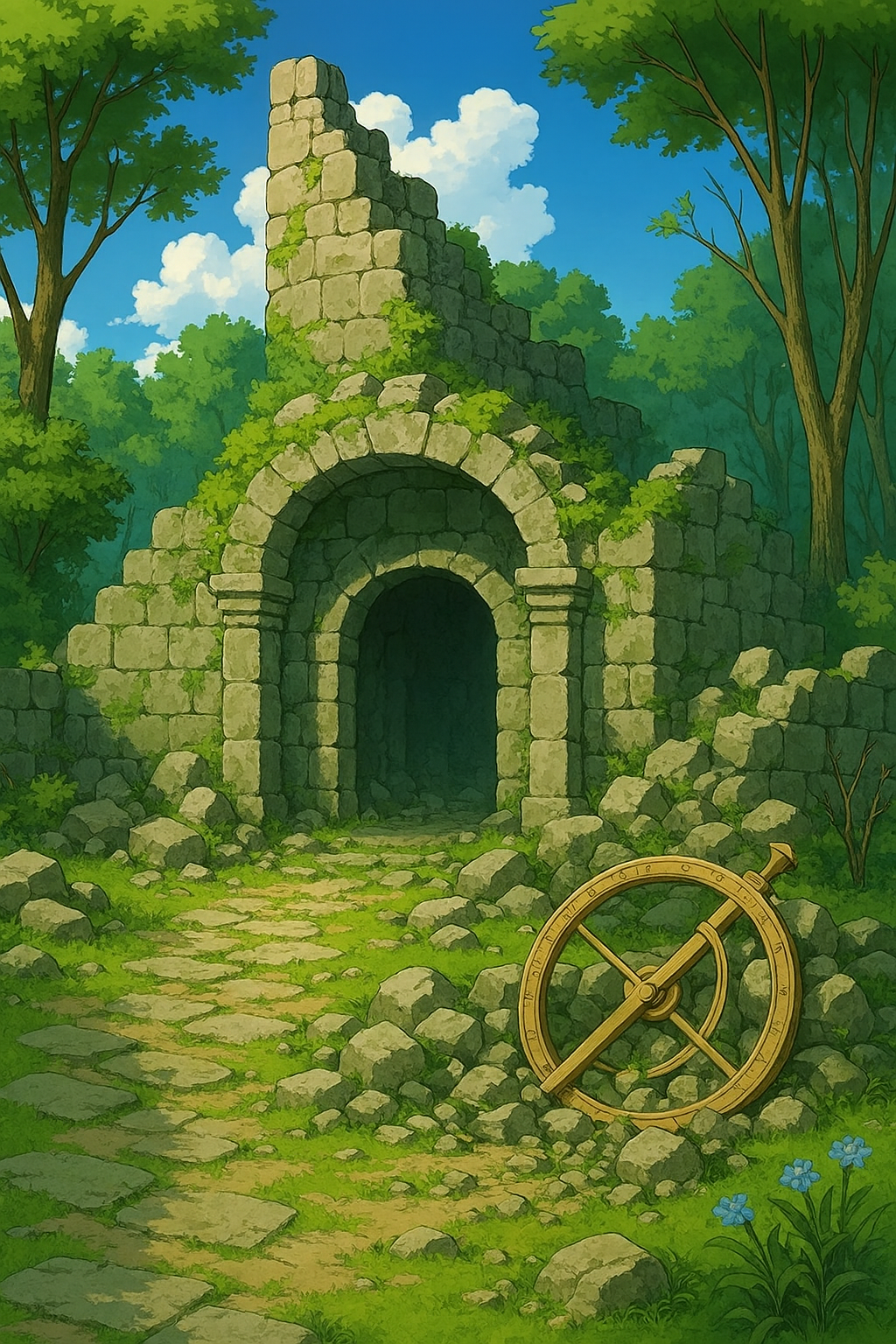 Now, the ruins shimmer with mystery: flickering lights dance among the rubble after sunset, and one wide-eyed child swears they heard music drifting up from below, soft and twinkly like a lullaby played on stardust. Beneath the collapsed stones lies a sealed vault etched with celestial carvings and a broken astrolabe that might still remember how to point the way.