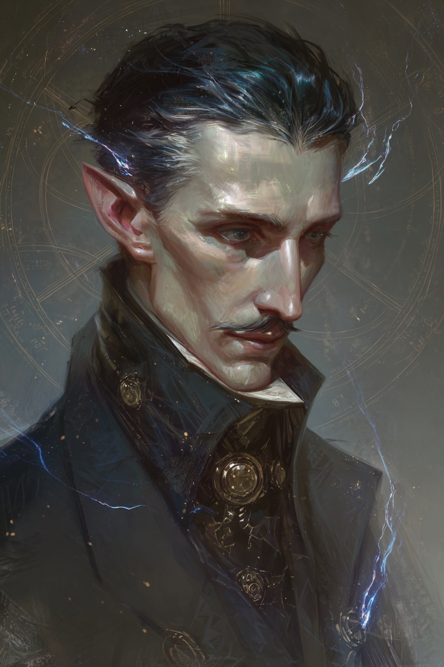 Aelius Nikolai Tesla stands as one of the most enigmatic and transformative figures of Nyrian history, a man whose name became synonymous with Galvanic Power and whose legacy still hums beneath the modern world. Inspired by principles that blurred the line between science, philosophy, and mysticism, Tesla was neither solely an Engineer nor merely a theorist. By Nyrian standards, he was unmistakably an Alchemist—one who sought not only to harness power, but to understand its hidden nature and moral weight.