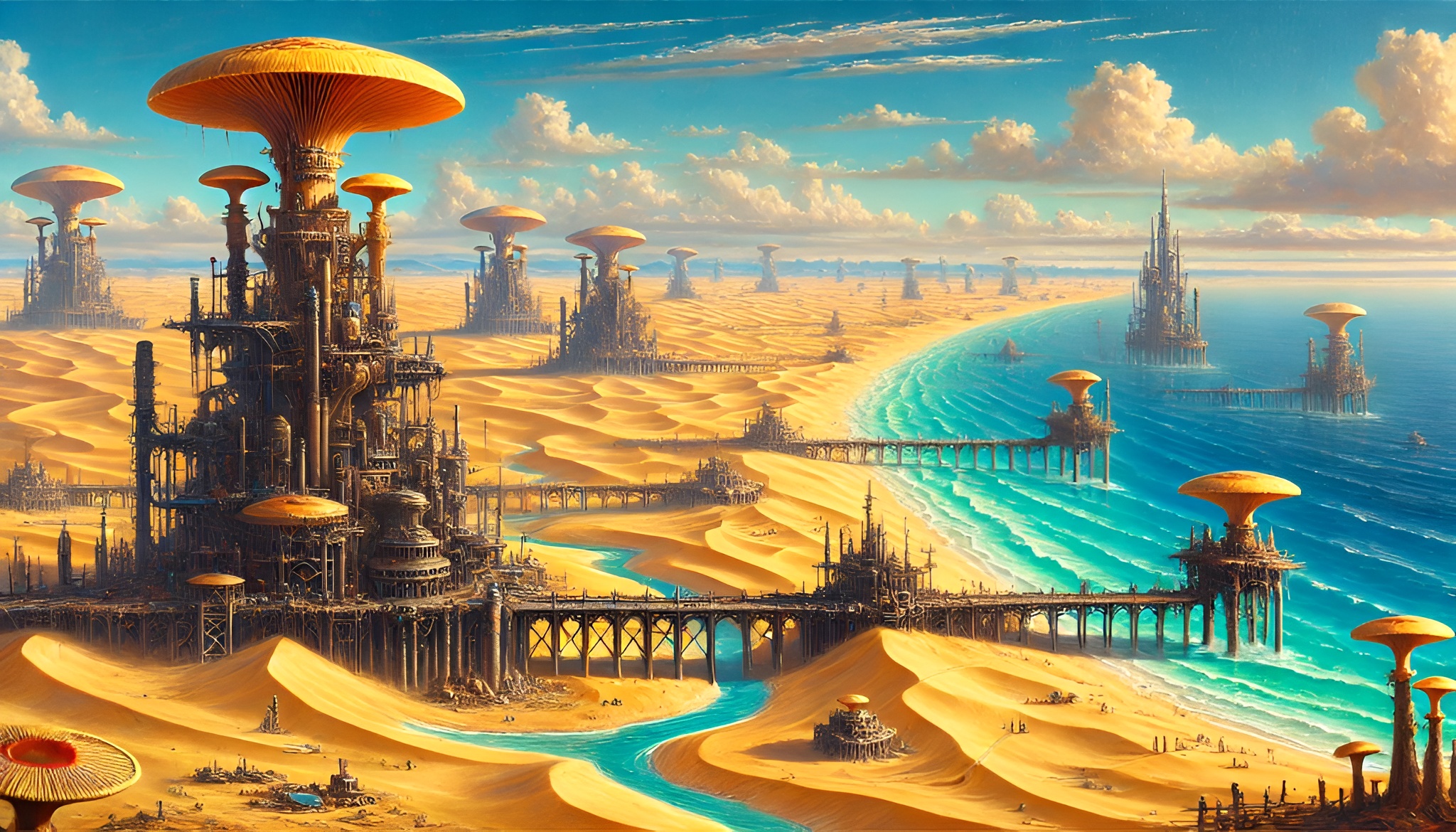 From this foundation, Emmeport swiftly grew into one of Moria’s foremost centers of Aetherdiesel harvesting and distribution, its ports transformed into lifelines of trade and power. Tankers and caravans stream endlessly from its docks, carrying the nation’s lifeblood across land and sea, while entire economies beyond its borders depend on its steady flow of fuel. Yet with wealth came complexity: the Harborland thrives as a hub of opportunity, but also bristles with tension—between rival merchants seeking control, foreign powers hungry for influence, and the coastal communities that live beneath the shadow of the rigs. To many, Emmeport represents prosperity itself; to others, it is a reminder of how quickly the ocean’s bounty can be transformed into both fortune and fire.