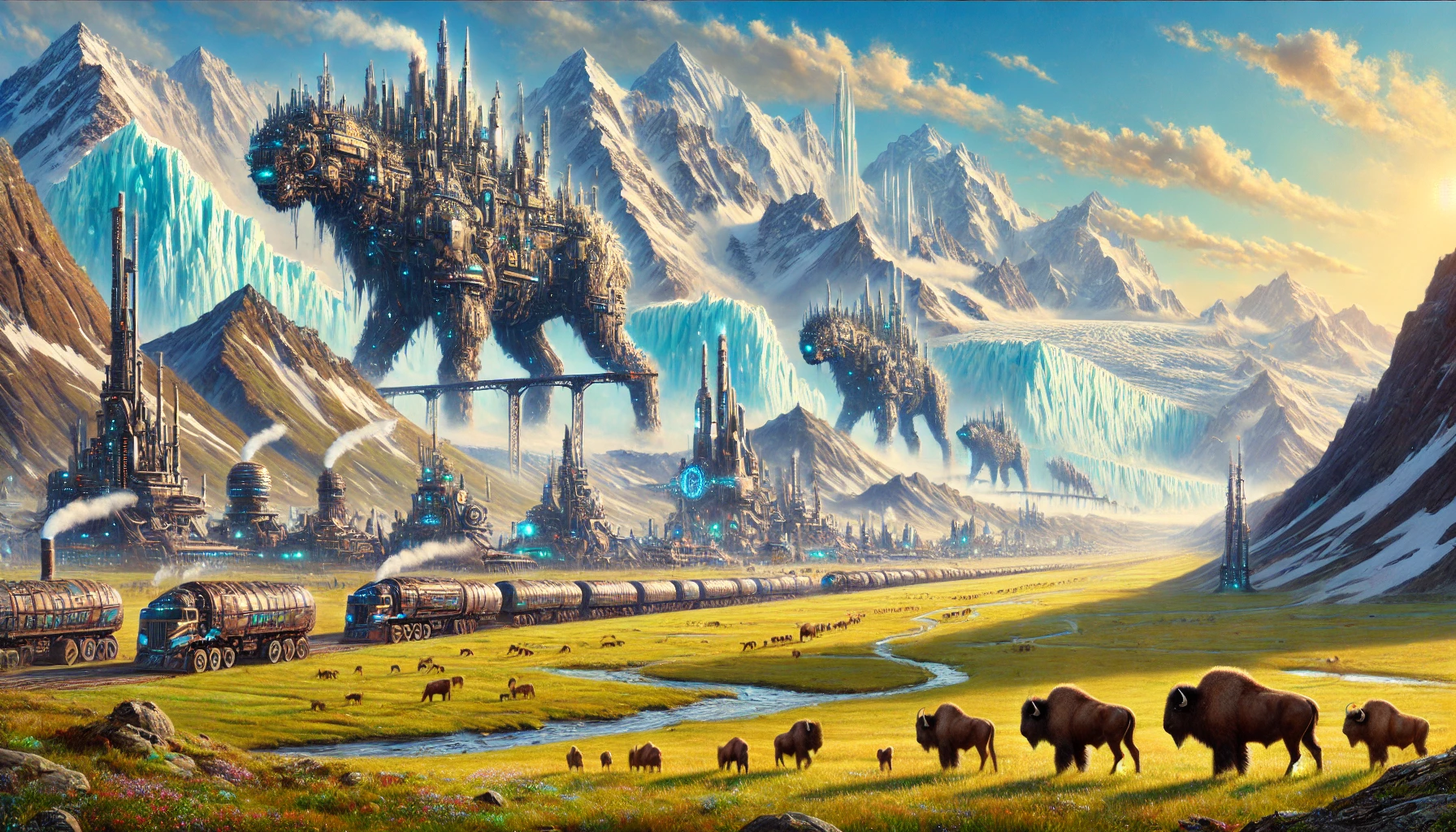 Fennexianu is a land where human resilience meets the enormity of nature. Its vast grassy plains, fertile and alive with native beasts, stretch outward until they meet the harsh frontiers of towering glaciers and walls of ice. The people of Fennexianu live in constant awareness of these frozen giants, fearing the day they might collapse and unleash floods that would drown their homeland for eternity. From this belief was born both their faith and their innovation: the great creatures known as the Fennia. These colossal beings, revered by the earliest tribes as guardians of the plains, became the foundation for survival. With reverence and ingenuity, the tribes armored their beloved companions and constructed sprawling cities upon their backs—winding streets, humble dwellings, and proud halls rising without piercing flesh or bone. To live upon a Fennia was to live in motion, carried safely above the earth that might one day betray them.
