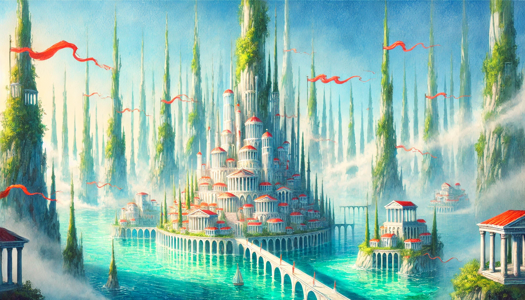 Girruvai is a striking kingdom of Thalas, defined by its breathtaking geography of tall, thin, spiked cliffs that pierce the horizon like the teeth of some ancient god. Entire cities are carved into these cliffs, their palaces and homes built vertically along the sheer rock faces, overlooking narrow waterways of turquoise blue. The waters that surround Girruvai are impossible to navigate by large ships—the dense maze of jagged peaks forming a natural fortress that has protected the nation for centuries. Yet geography alone is not its only guardian. Legends tell of two colossal octopi, ancient creatures of myth said to have dwelled in Girruvai’s depths since the dawn of Thalas itself. These titanic sentinels rise from the sea whenever the kingdom is threatened, crushing intruders before vanishing once more into the abyss, their motives as mysterious as their origins.