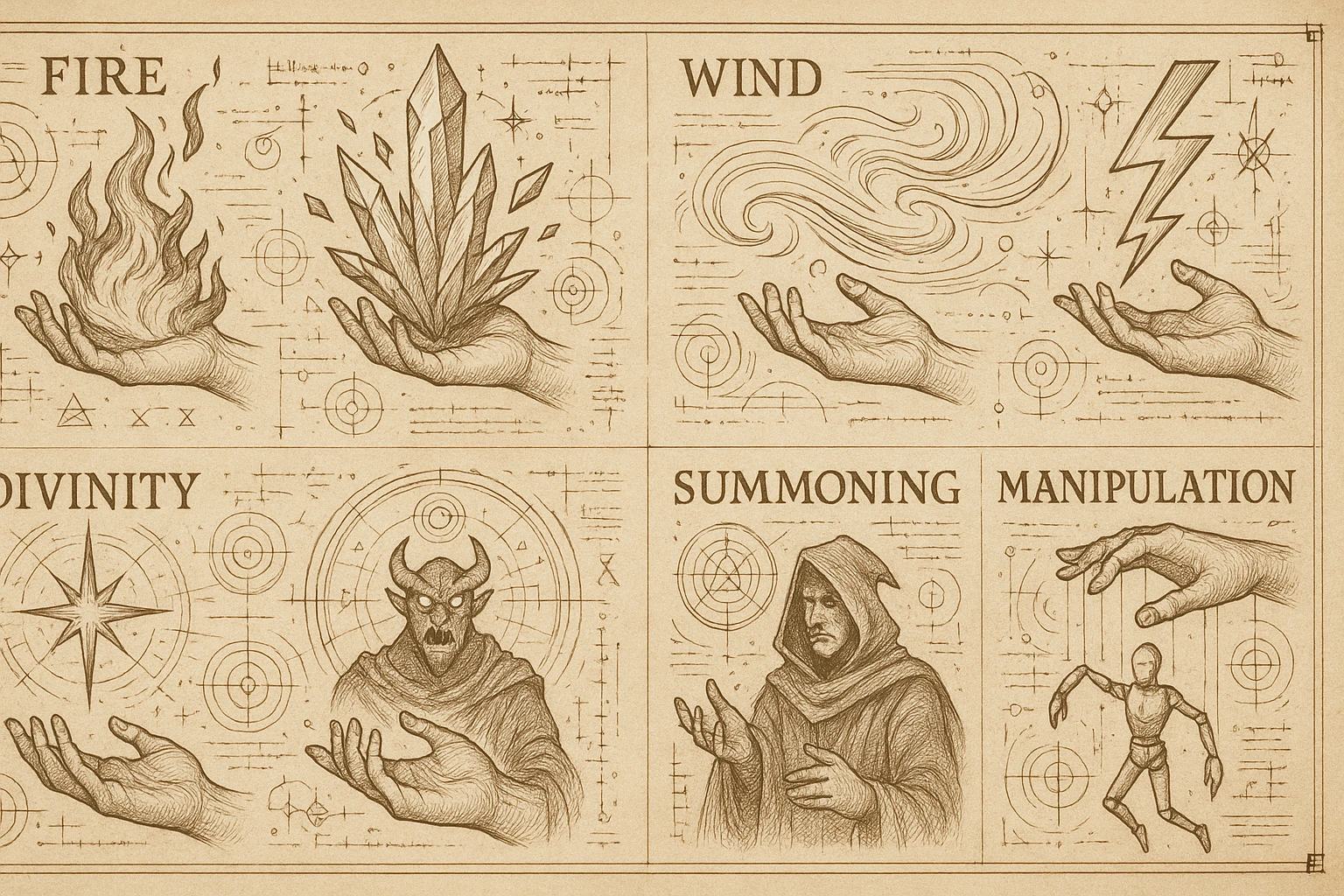 The Arcana is an ancient codex of writings crafted to understand the nature of Aether — the primordial force that fuels all life and magic. Within its pages, Aether is classified into various Affinities, each representing a fundamental aspect of the world and the magical disciplines derived from them. These main affinities correspond to elemental forces, such as Fire or Water, and form the foundation for magical study and spellcasting. However, beneath each lies a complex web of Sub-Affinities — rarer, more abstract branches of magic that, while categorized under a primary affinity, often extend far beyond its physical properties.