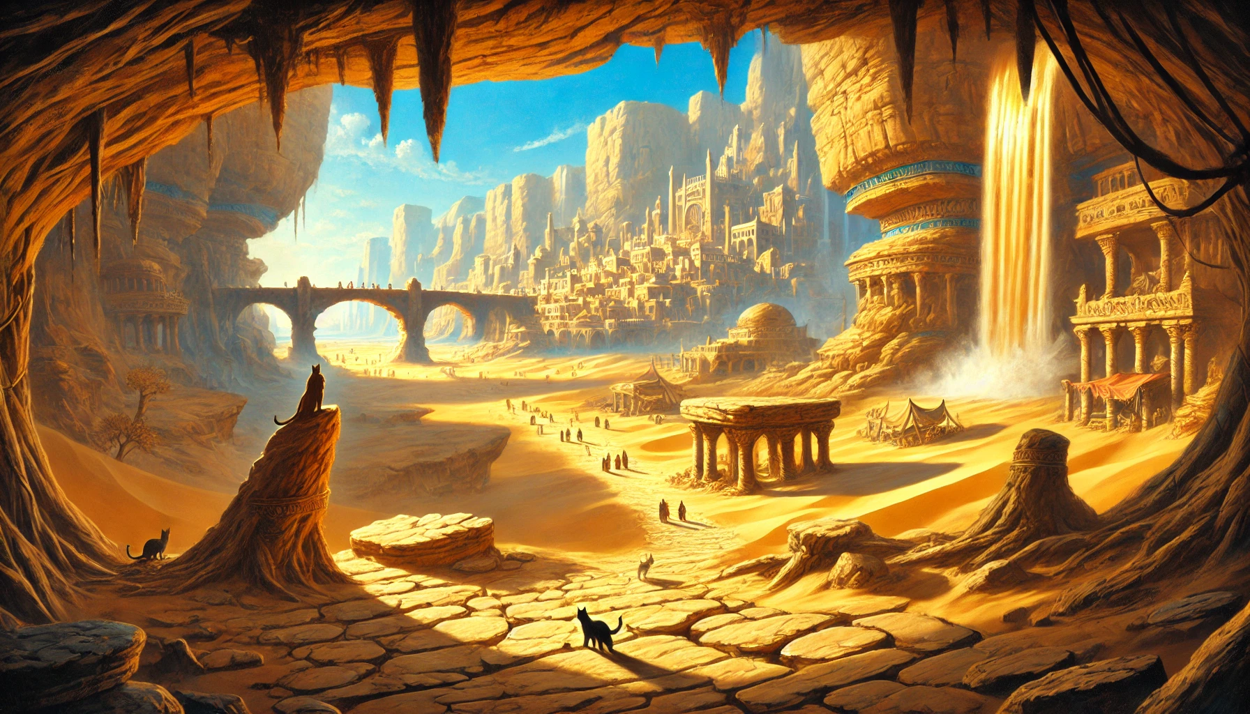 The nation is not without its quiet wealth. From beneath the quicksands, Hobblesanders draw forth hidden jewels using specialized tools and techniques honed over generations. These treasures fuel a modest trade that sustains their merchant class, who are known more for fairness than opulence. Life in Hobblesand is simple, marked by close-knit communities and an unexpected harmony with the native cats of the region. Once creatures that survived only by clinging to rocky outcrops and avoiding the deadly sands, the cats have since integrated into human settlements, becoming companions and guardians within the towns. In this union of resilience and adaptation, Hobblesand flourishes—a nation small and overlooked, yet quietly triumphant in turning peril itself into protection.