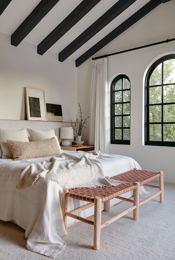 A sturdy 3-floored building made of brick and dense wooden support beams. The walls are covered with a plaster to protect the brick from the elements as well as to give it a smoother finish, while keeping the beams visible and giving the place a rustic and cozy look.