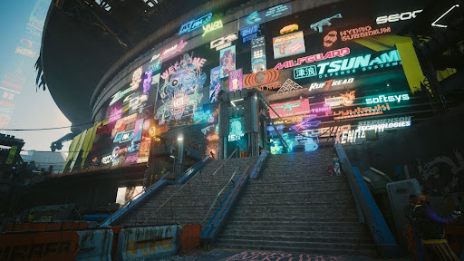 Two towers reach to the sky, bedecked in all the glitz and neon that the current cultural zeitgeist has to offer. The residential parts of each tower start at the fourth floor, with the lower three floors being dedicated to the connecting building. The two towers are connected by a large building at the base level. This building is open to the public, as most of it is a museum that houses the Rock and Roll Hall of Fame. An enormous concert stadium is built behind yet sharing the same section of Paradise City as the Tower itself.