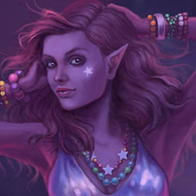 Vivian is a vivacious elven woman who hides a keen mind behind her fashionable exterior. Her hair color is as mercurial as her moods, constantly changing.