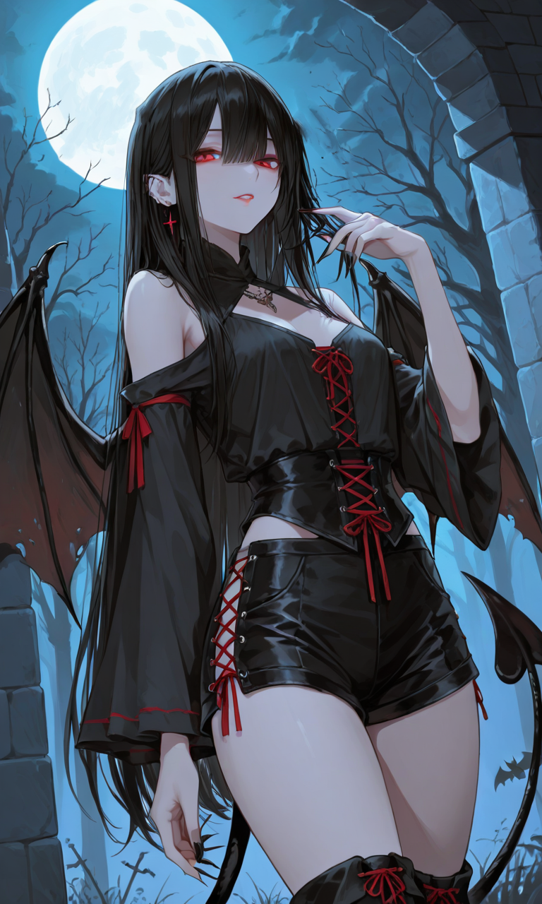 Lyzal has large leather bat-like wings and a long serpentine tail with a barb at the end.