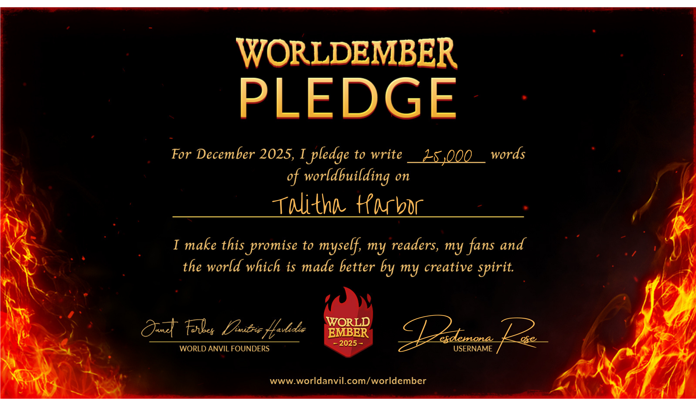 - The planet: Talitha Harbor - It's time to buckle down and finish planning the planet as a whole. This will have implications on a number of things, but, importantly, their seasons. The series spans across four seasons and includes sea travel. I need to know what that looks like.