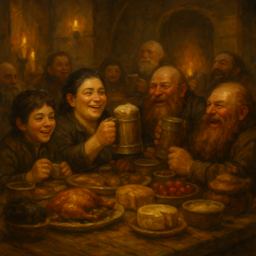 Fermentation is central to dwarven food culture. Their breads are dense, sour, and intended to last for weeks; their cheeses sharp and mineral-heavy; their ales and spirits potent enough to warm the body in the coldest tunnels. Alcohol itself holds cultural and ceremonial weight, symbolizing both labor and celebration, though dwarves are not reckless drinkers—they brew for sustenance as much as enjoyment.