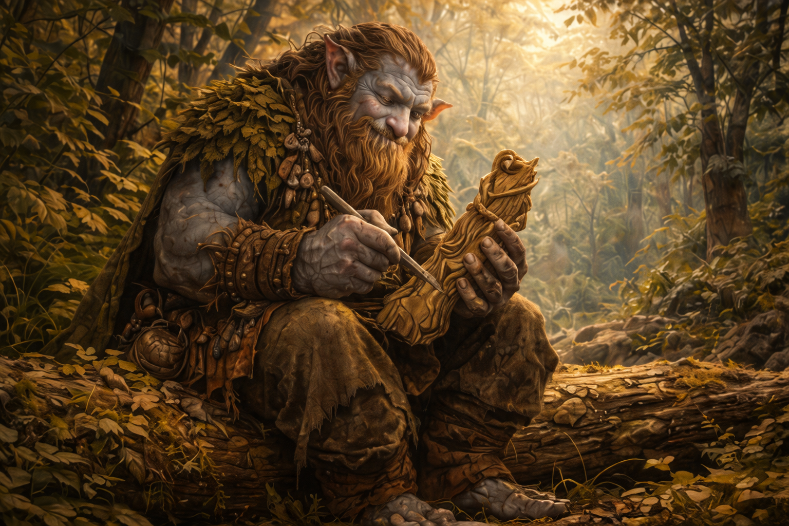 Despite their size, Firbolg leave little visible impact on their surroundings. Trails are subtle, campsites temporary, and resource harvesting is conservative. Trees are rarely felled outright; instead, Firbolg favor fallen timber, selective pruning, and natural die-off. Hunting is practiced sparingly and with ritual acknowledgment of the life taken.