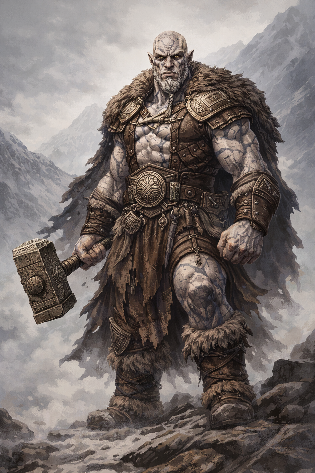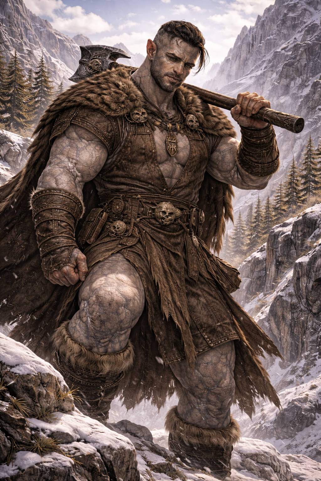 Early goliath communities formed in remote mountain ranges, where isolation and scarcity shaped their development. Cut off from fertile lands and major trade routes, they learned to survive through cooperation, repetition, and intimate knowledge of stone and weather. Over generations, these pressures favored physical resilience over intellectual or magical advancement, reinforcing the traits now characteristic of the race.