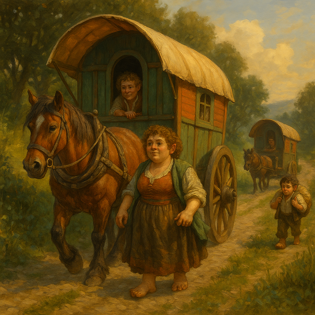 They maintain a particularly close relationship with gnomes, especially tinkerers and illusionists, with whom they share a love of clever tricks, stories, and strange contraptions. Some mixed caravans blur the line between gnome and halfling culture entirely, producing inventions as often as they produce pranks.