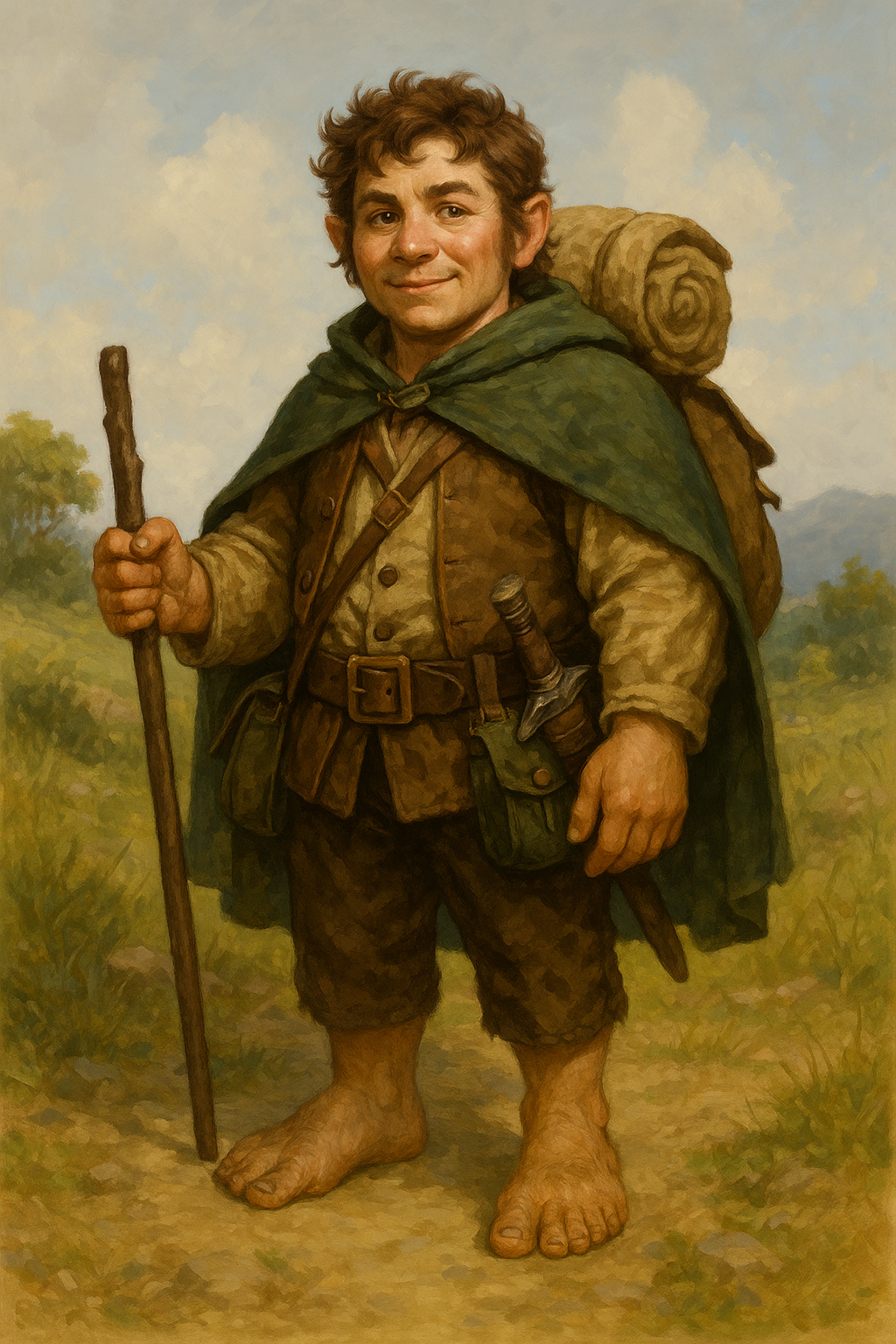 Halflings are hardy despite their size, with strong constitutions and excellent reflexes. Their feet are tough and calloused from long-distance travel, often leading them to forgo footwear entirely. Their bodies are compact but sturdy, with slightly elongated torsos and short limbs built for balance and quick movements. Facial hair is rare among males, and hair color tends toward warm browns, russet reds, and sandy blondes. They have excellent night vision (though not true darkvision), sharp hearing, and a finely tuned sense of direction. Some show a natural resistance to magic, toxins, or mental manipulation—believed by some scholars to be a gift from ancient guardian spirits of the road.