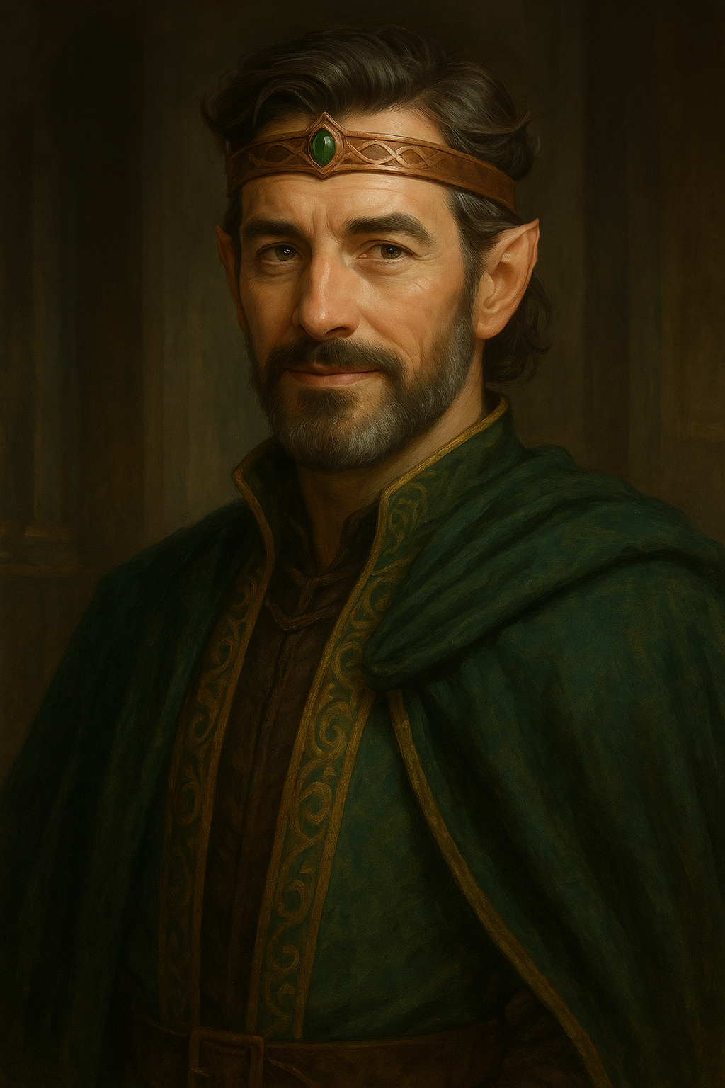 King Thandor of Kamulos is a proud and principled ruler, born of mixed heritage and raised in the heart of Tanaria’s most storied kingdom. A quarter-elf with the bearing of a seasoned warrior and the mind of a careful statesman, Thandor embodies the balance between tradition and progress. He ascended to the throne not through ceremony alone, but by earning the loyalty of his people and the respect of his enemies. Known for his unwavering sense of honor, deep devotion to Seraphis, and tireless dedication to his realm, Thandor rules with a steady hand and a soldier’s vigilance. Though Kamulos is a land of abundance and order, its strength has always come from its resilience, and Thandor is its living symbol.