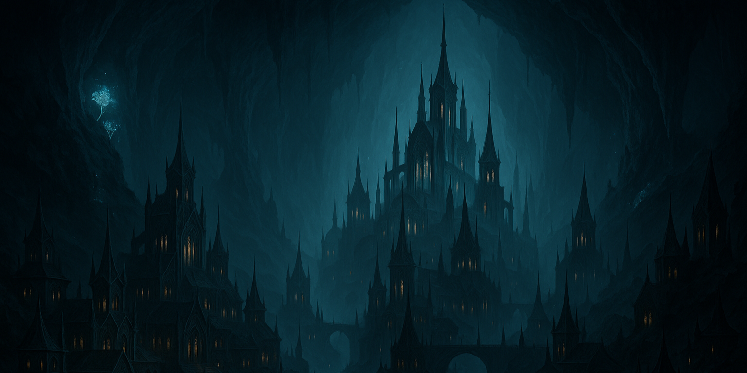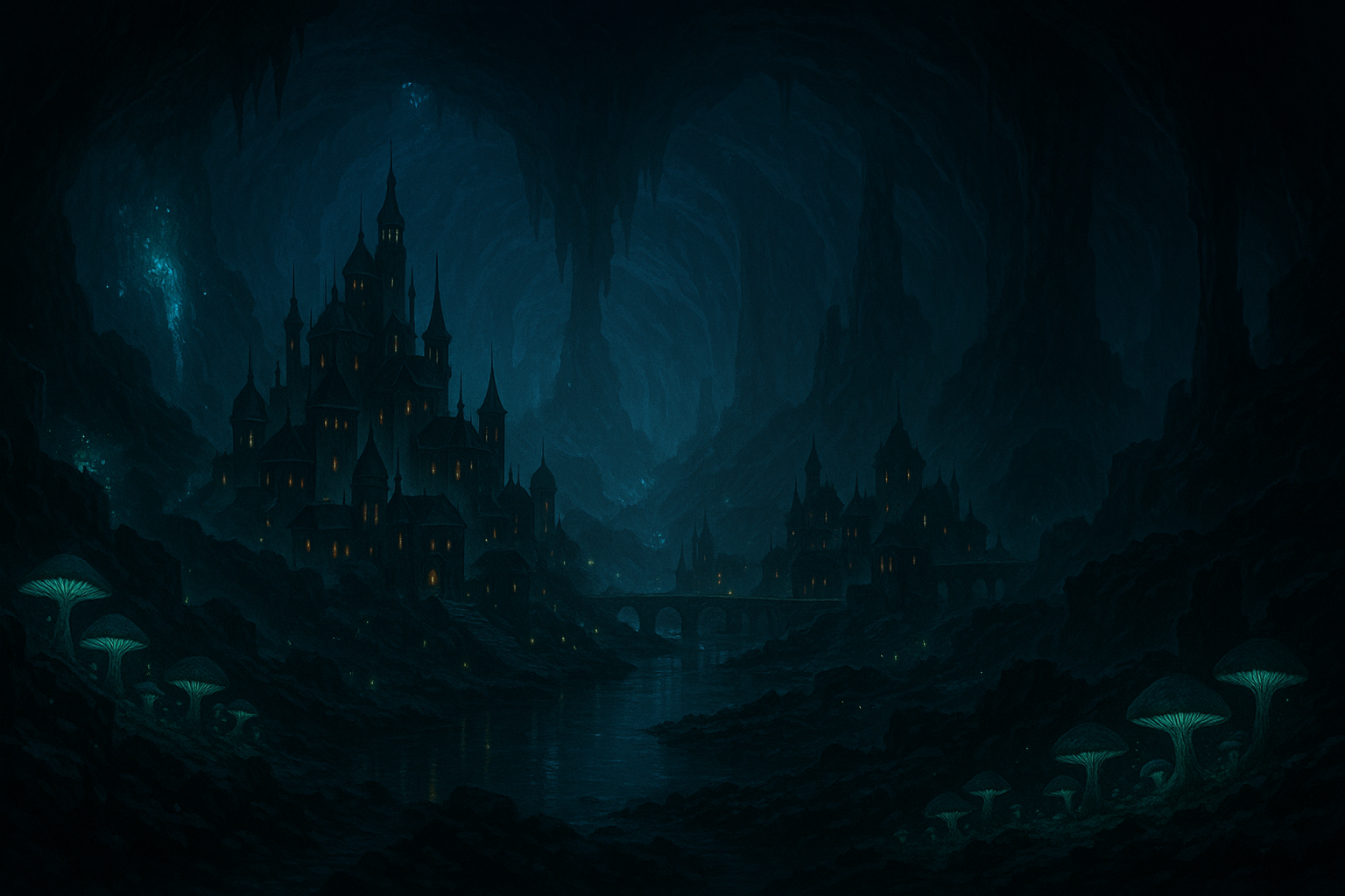 The Noctharen thrive in the deep reaches of Tanaria’s underground world, an immense labyrinth of cavern networks, fungal forests, crystalline lakes, and cities carved directly into the stone. Their optimal environment is one where sunlight never touches, and the world is shaped instead by bioluminescent flora, echoing chambers, and the slow drip of subterranean rivers. They are so intrinsically adapted to the Undernet that prolonged exposure to surface light is not merely uncomfortable but physically taxing, often inducing migraines, nausea, and temporary disorientation. For this reason, most Noctharen who travel above ground do so only at night and with protective coverings, enchantments, or specialized goggles to dull the brightness.