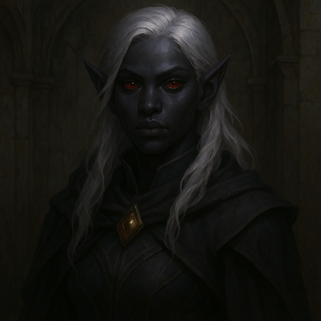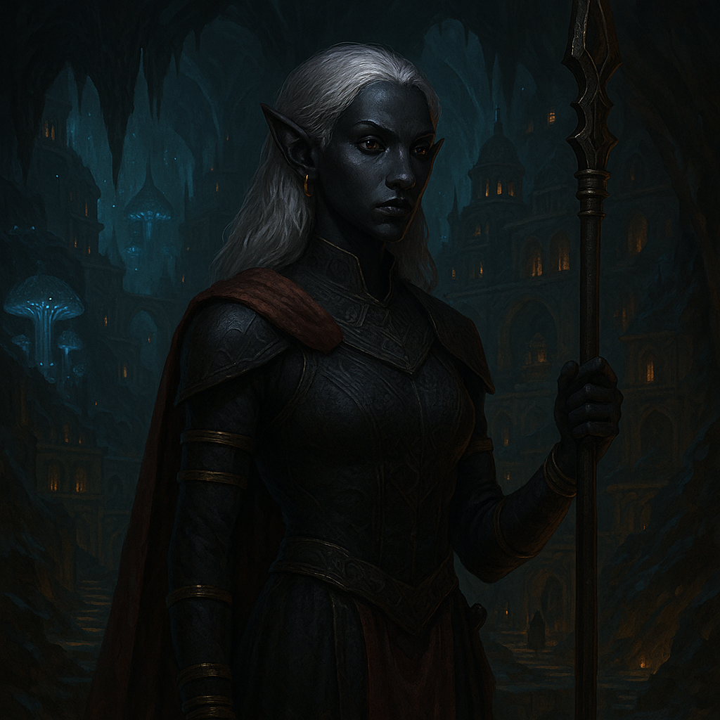 The Noctharen are a subterranean subspecies of elves shaped by millennia in the deep caverns beneath Tanaria's surface. Their bodies have adapted to a lightless world through obsidian-dark skin, pale or silver-toned hair, and eyes capable of perceiving the faintest radiance from bioluminescent fungi. Unlike their surface kin, the Noctharen built their civilization within vast cavern networks where scarcity, danger, and political tension forged a culture that values discipline, lineage, and strategic power. Their society is traditionally matriarchal, guided by ancient Houses whose authority stems from bloodline prestige and arcane mastery. While outsiders often stereotype them through rumor and fear, fueled partly by extremist sects that embrace brutality, the Noctharen as a whole are neither inherently malevolent nor monolithic. They possess a rich intellectual tradition, a pragmatic worldview, and a fierce loyalty to their kin. Their worship centers not on Umbra or the surface pantheon, but on an older, subterranean deity whose influence shaped their resilience and identity beneath the earth.