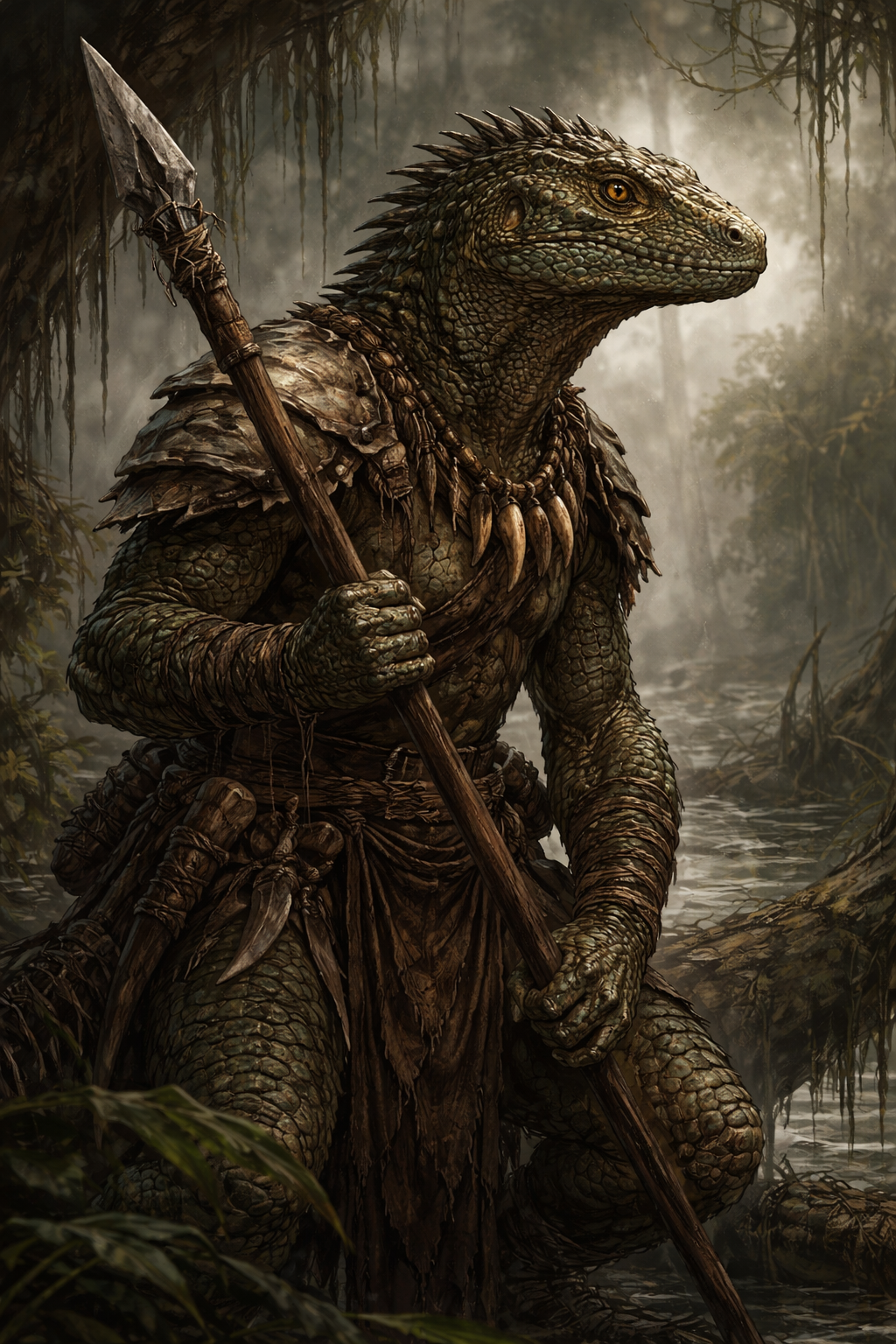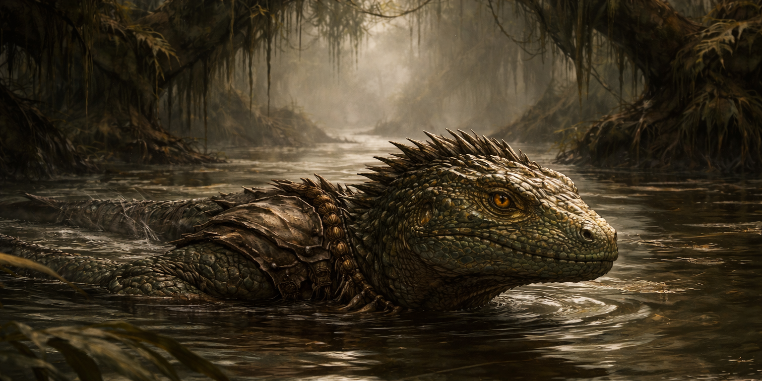 Physically, Sszekar are powerfully built, with dense musculature, scaled hides, long tails used for balance and propulsion, and digitigrade legs adapted for swimming and marsh travel. Their activity cycles are governed by temperature rather than time, with periods of intense productivity followed by extended stillness. This rhythm shapes every aspect of their settlements and social organization.