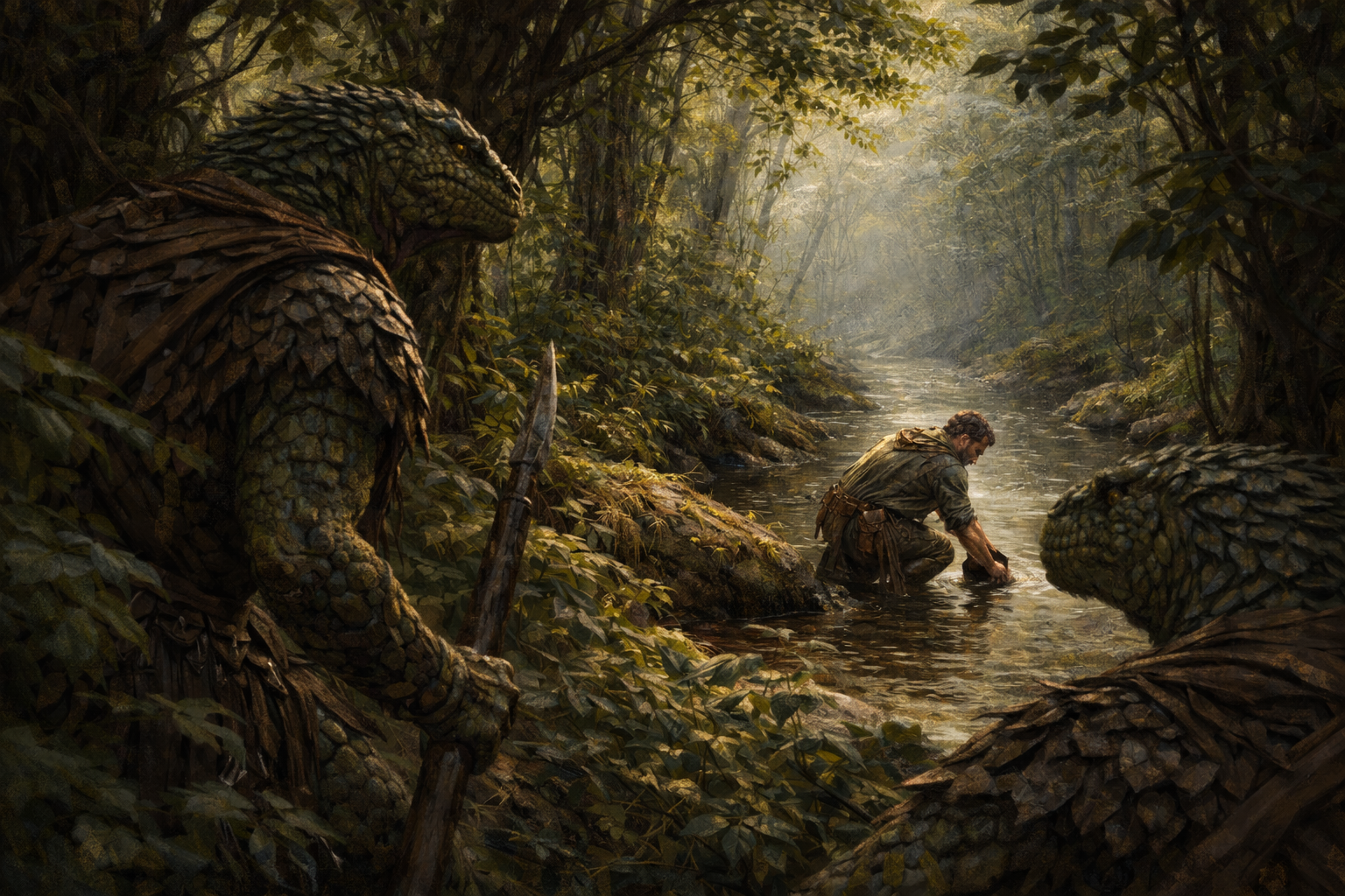 Humans are regarded with particular caution. While capable of coexistence, humans are seen as environmentally volatile, prone to rapid expansion and short-term solutions. Individual humans may be tolerated or even respected, especially rangers, druids, or river-keepers who demonstrate restraint. Human institutions, however, are rarely trusted. Agreements made with one generation are not assumed to hold with the next.