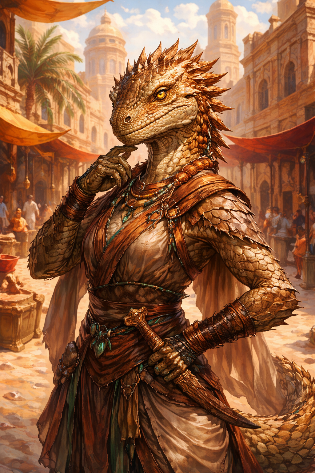 The Sszekar are a reptilian humanoid species native to the warm wetlands, river deltas, and humid lowlands of Tanaria. Cold-blooded by nature, their biology and culture are inseparable from heat, water, and ecological stability. Outsiders commonly refer to them as lizardfolk, a term the Sszekar themselves neither use nor acknowledge.