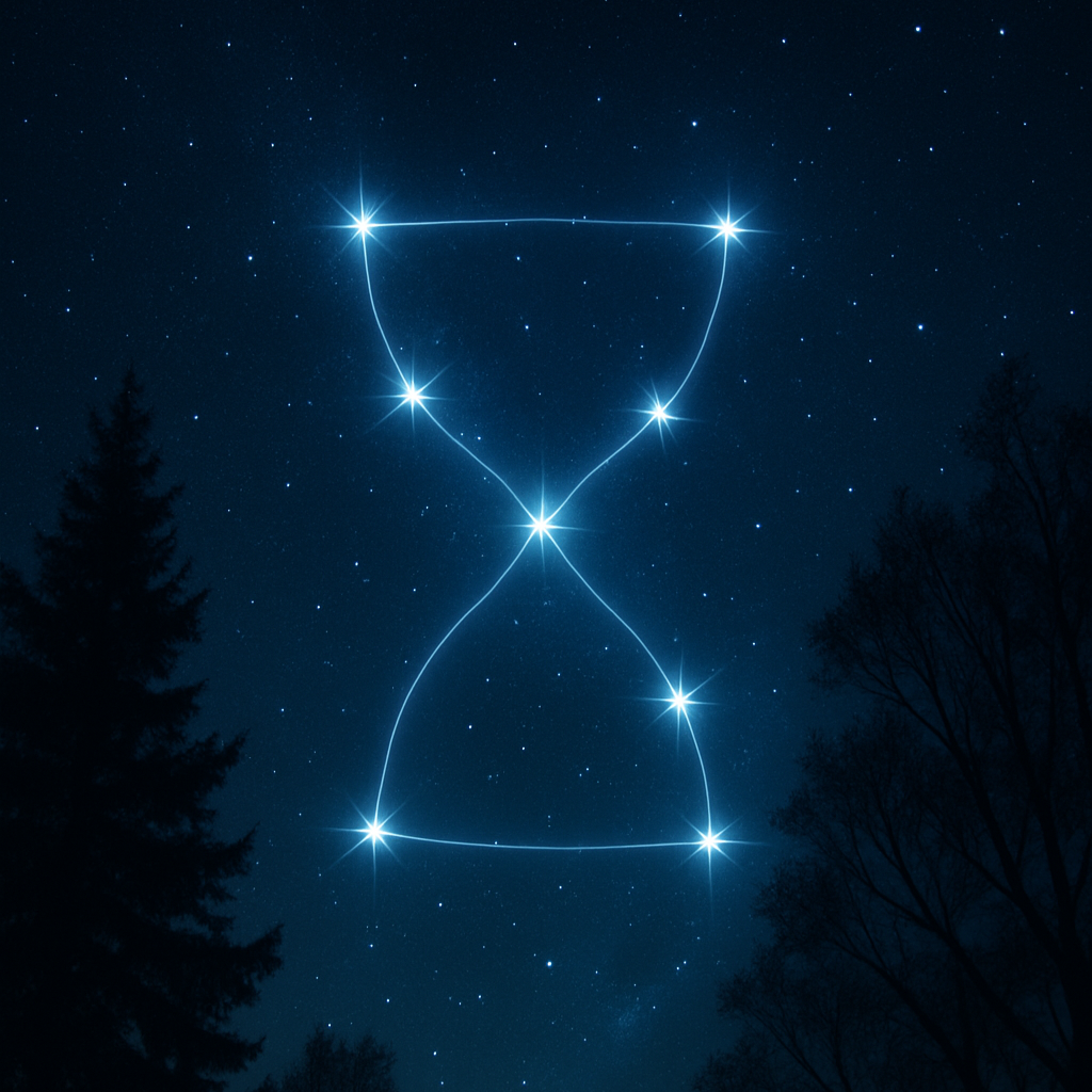 The hourglass constellation represents the Hourglass of Aeternum—Solarius’s divine hourglass filled with golden sand that never depletes.Positive Traits: Visionary, Outgoing, Principled