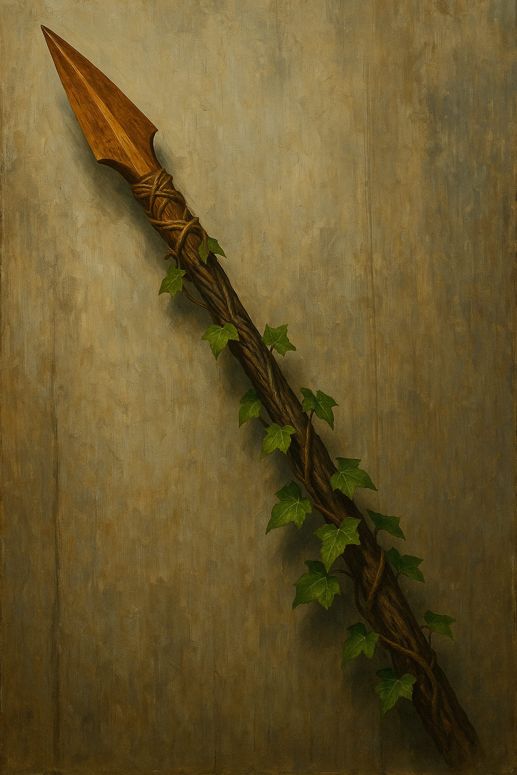Wren shaped the spear himself, guided not by technique but instinct. The haft twisted naturally beneath his hands as if eager to take form, and the heartwood point hardened during a ritual trance that left Wren exhausted but victorious. Ivy took root along the weapon as soon as it was completed, a sign of mutual recognition between the tool and the one who carried it.