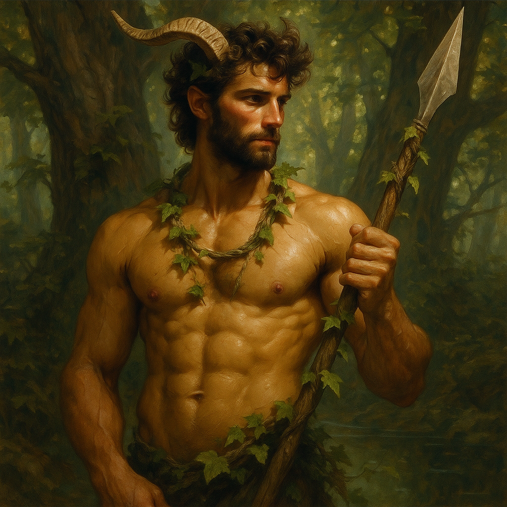 The spearhead is not steel but hardened heartwood, sharpened to a lethal point through a druidic ritual passed instinctively to Wren through his dryad lineage. The point gleams with a subtle amber sheen, like sap frozen mid-drip. Ivy coils naturally around the lower haft, never withering, responding subtly to Wren’s mood and the presence of predators.