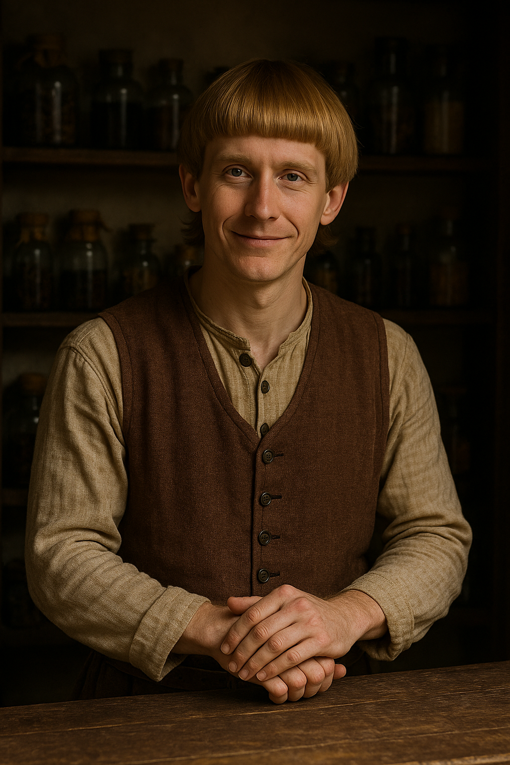 Åsleik driv med Herbalisme, Alkymi og gift i Portád. Han eig ein liten butikk der han sel drikkar, oppskrifter og liknande kalla Vistnes Eleksirer.
