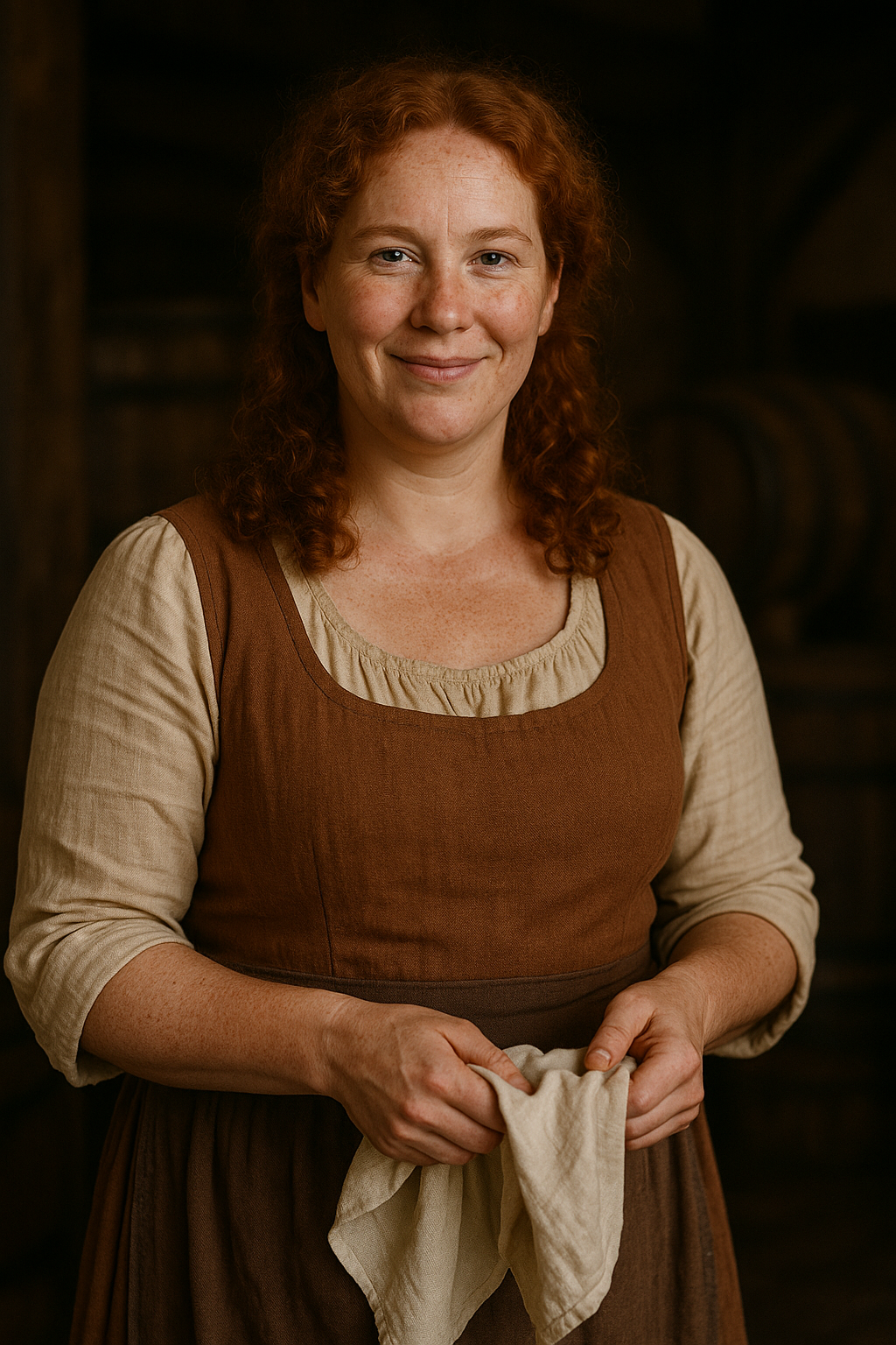 Gjertoline er kona til bryggaren Larrgh Kornmeister i byen Portád.