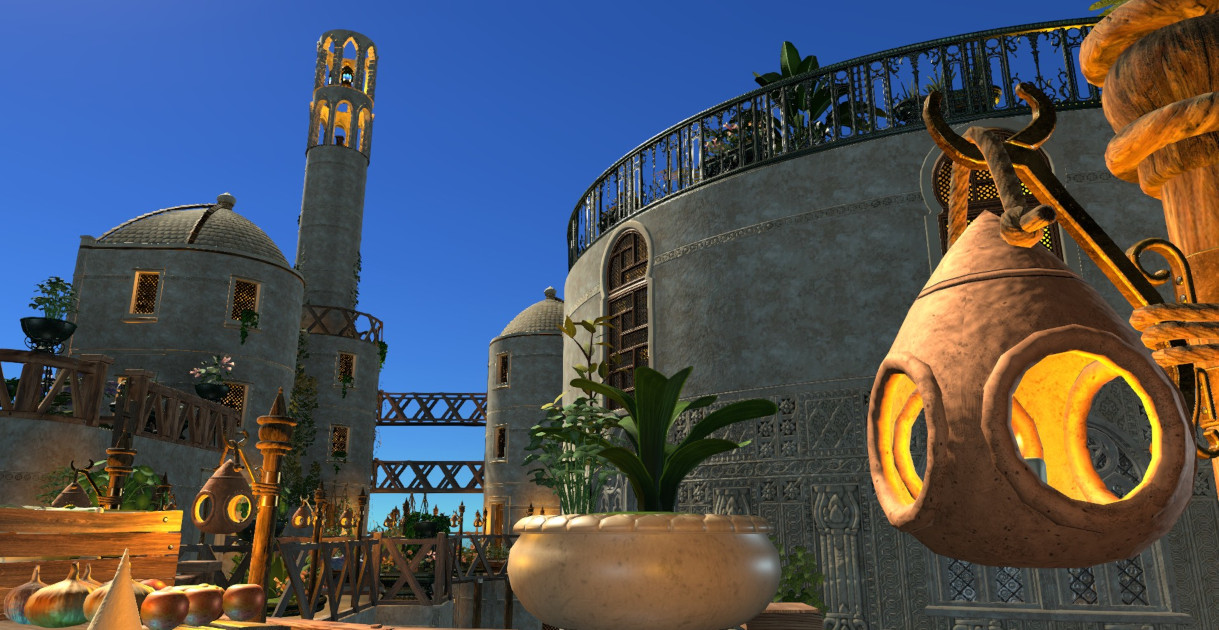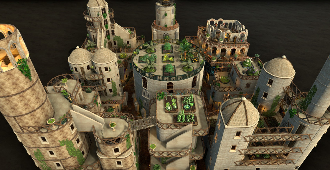 The city is built with space in mind, with most people living in relatively small quarters, those environs getting smaller and smaller the further up one goes. Everything is built of mud over stone frameworks, lending a thick layer of insulation to each building. Air catchers and rooftop gardens help keep each house stay temperate, while cool, circulating air provided by the city completes the air conditioning process. The city also provides water and food for each person living within its confines, although many people grow their own herbs and vegetables to supplement their diets. Fruit trees are grown roadside by the city, and people are encouraged to pluck and eat of them.