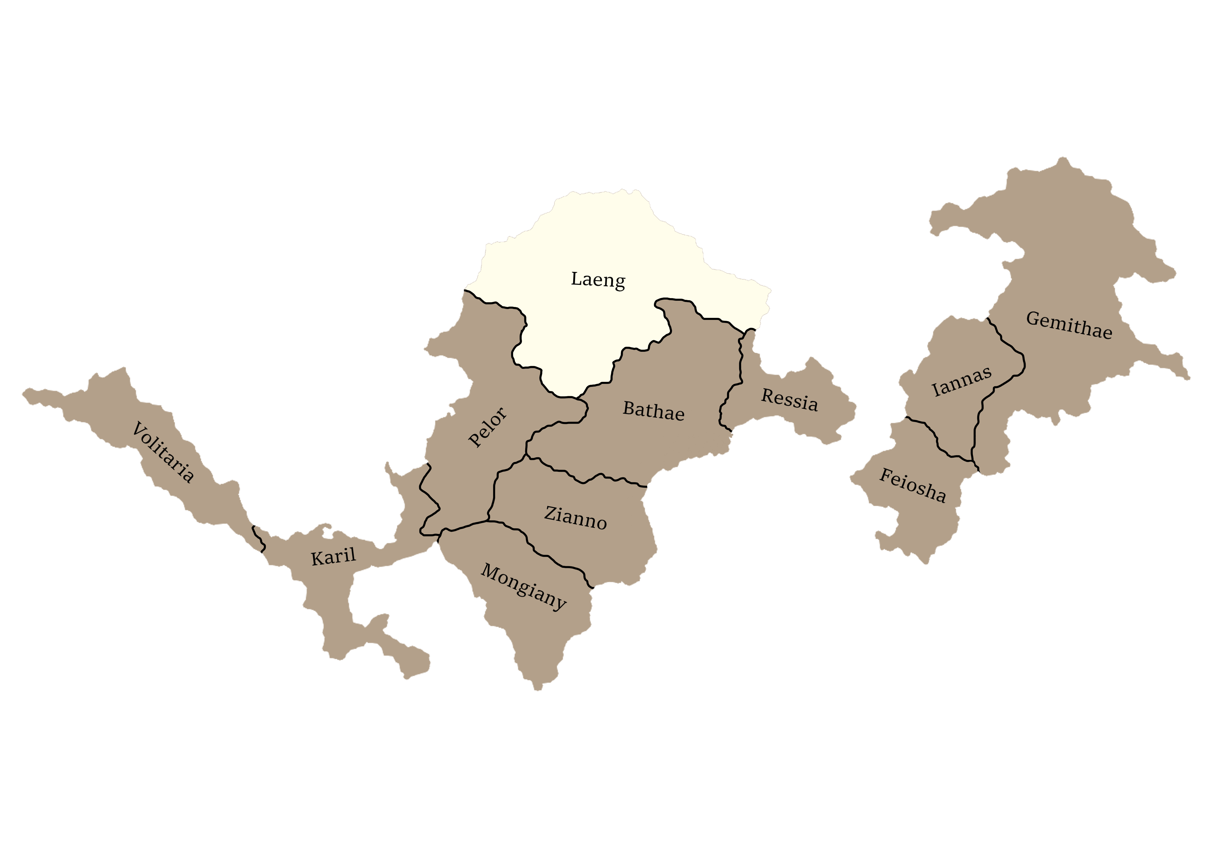 In the north of the DIvinarate lies one of its more odd provinces. The land of Laeng is a temperate, hilly and forested environment, with large mountains in the north which act as the Divinarates northern border. The province is the most militaristic Rasini province and the third biggest supplier of manpower in the Divinarate. A huge network of fortified passages through the mountains protects the province from its biggest threat, namely the rogue Bezjan menace invading from the north.