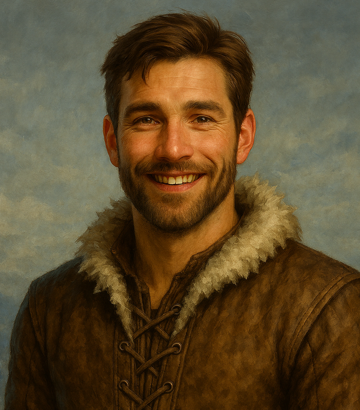Als Löpenskold-Spieler ist er körperlich rundum fit. Man sieht kein Gramm Fett an ihm, doch er ist auch nicht muskulös. „Drahtig“ und „gewandt“ sind die treffenderen Begriffe, um ihn zu beschreiben. Er ist recht hochgewachsen und ragt in der Menge mit einer halben Kopflänge über die meisten hinaus. Für den Sport trägt er seine hellbraunen Haare kurz und verzichtet auf einen Bart. In der Saisonpause jedoch, wenn nur trainiert wird, lässt er beides wachsen. Seine Augen sind wachsam, seine Gesichtszüge haben etwas Edles. Viele verehren ihn als einen der attraktivsten Spieler der Liga.Hintergrund