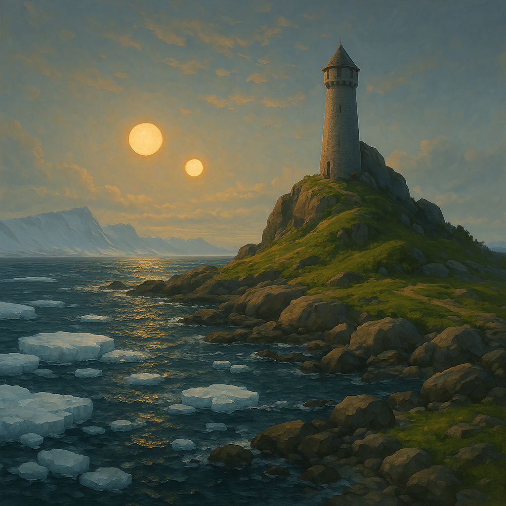 Der Außenposten der Golems liegt jenseits der Eisgrenze, auf einer der wenigen größeren Inseln, deren Grund aus grauem Felsgestein besteht. Für Frostmenschen ist dieser Ort fremd und verstörend. Sie kennen keine Gebäude aus Stein – ihre Architektur besteht aus Eis, mit Knochen als Verstärkung oder Verzierung. Alles, was sie errichten, ist breit, massiv und niedrig. Der Turm der Golems hingegen ragt über zwanzig Meter in die Höhe, schlank und präzise, ein Bauwerk, das in ihrer Welt nicht existieren könnte.