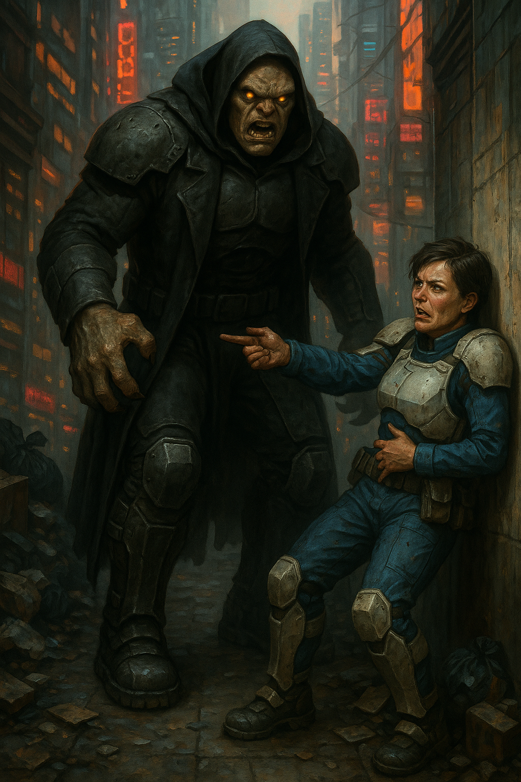 Brother Neverborn is not a man, nor a machine, but an engineered vengeance encoded in flesh and memory. Conceived and maintained by House Volkert, he is a Bioroid weapon of staggering lethality, constructed from the finest amalgamation of organoids and lies. Every cell of his being was grown with purpose; every memory he possesses was designed to compel obedience. He believes himself a tragic survivor of the Deimos Redspace Breach, a disgraced monk whose forbidden love and hidden family were torn apart by corporate betrayal. But none of it is true. He is not seventy years old; he was born in a vat less than a decade ago. He has never known love, only its facsimile.
