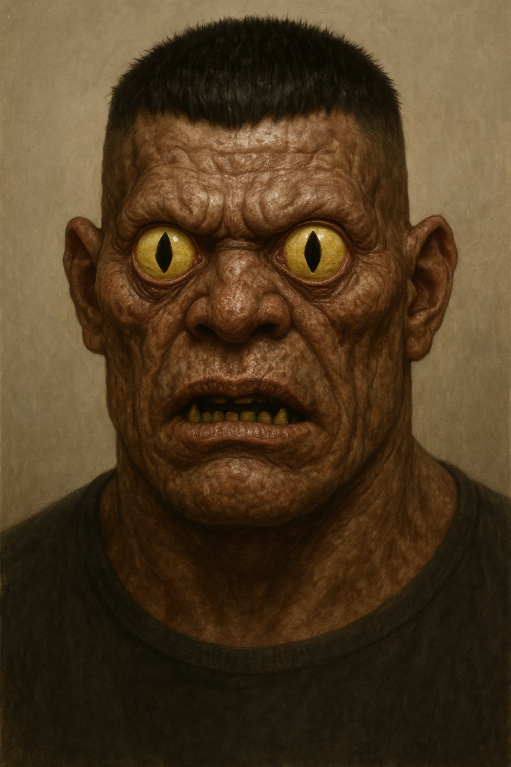Physically, Brother Neverborn is a grotesque marvel. Standing nearly nine feet tall, clad in black combat armor beneath a flowing longcoat, he is a creature of myth and nightmare. His pale, armored flesh resembles exposed intestine and rhino hide, his eyes glint with eerie yellow reflection, and his voice is as deep as distant thunder. With enhancements like hyperspectral vision, acute echolocation, and chemical scent memory, he is a tracker, executioner, and terror all in one. His body hides weapons and utilities that would shame an entire kill squad: pressurized acid spit, a retractable toxin stinger, parasitic appendages for mind-probing, and even the infamous Worm organoid that allows his resurrection, again and again.